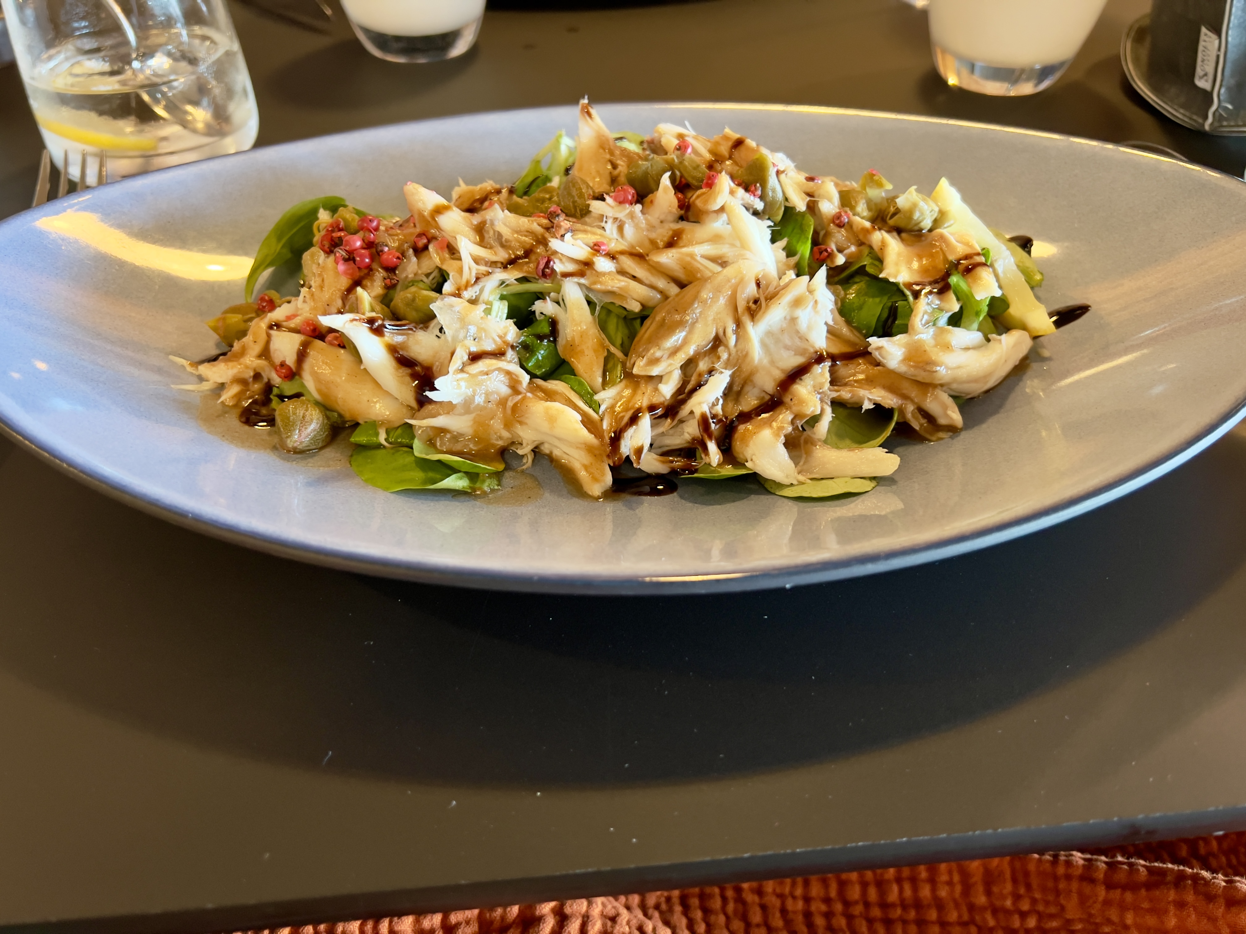 Une nouvelle table découverte cette année, que je vous recommande, cadre agréable surplombant le port et la mer, service en salle assuré par un jeune seul mais très pro et cuisine de très bon niveau, le tout pour un budget très raisonnable. Mais réservation impérative, seulement 30 couverts faute de personnel. Nous y reviendrons à la première occasion
