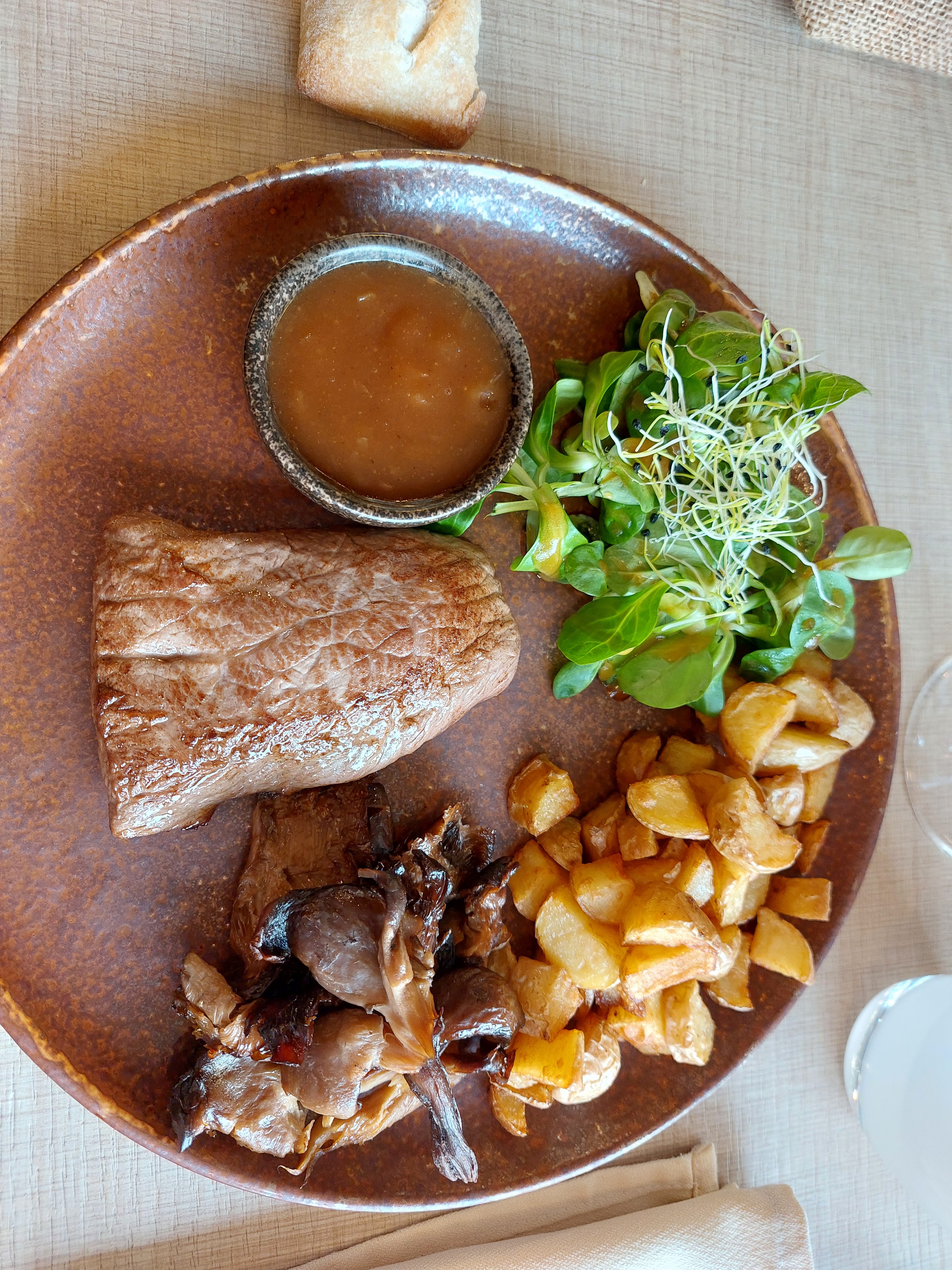 Très bien situé. Très bien servis. Repas excellent. J'ai même mangé les champignons.