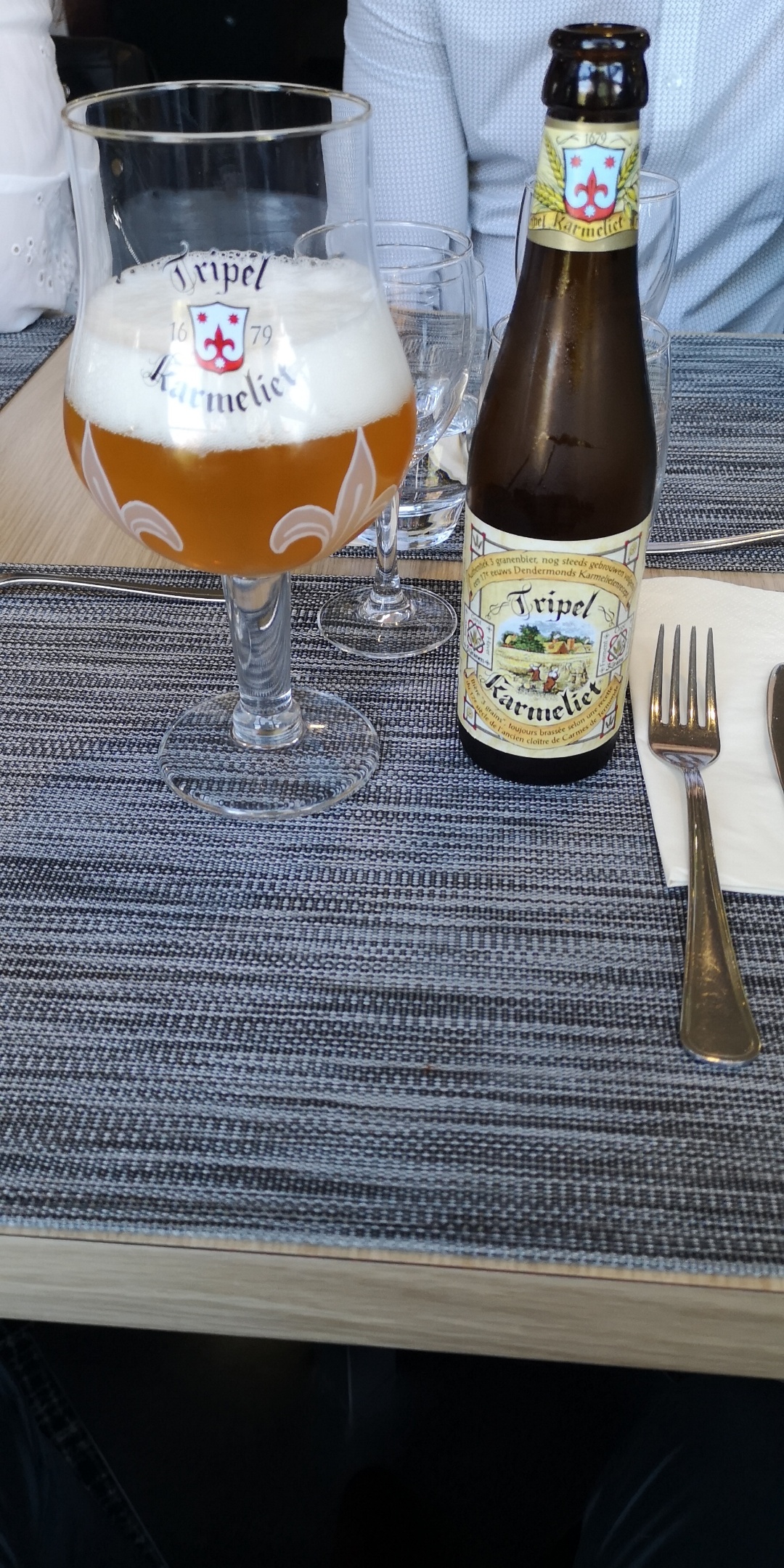 Excellent rapport qualité prix Le vin était de bonne qualité Nous avons pris le menu affaire du soir a 28€. En entrée un délicieux foie gras avec un chutney très parfumé et pour ma dame un saumon de belle qualité (bien fumée, pas trop gras) En plat des petits légumes bien assaisonné, avec pour ma part des pastas très aillé mais aussi très gourmande avec un pavé de veau légèrement trop cuit a mon goût mais je pinaille Mon épouse s est régalé avec un rouget parfaitement cuit sur une sauce tomate excellente mais peut être un poil trop présente (encore en pinaillant 😁) En dessert une crème brûlée qui termine bien ce bon repas 👍 Le tout avec un pain délicieux et un service de agréable et souriant.