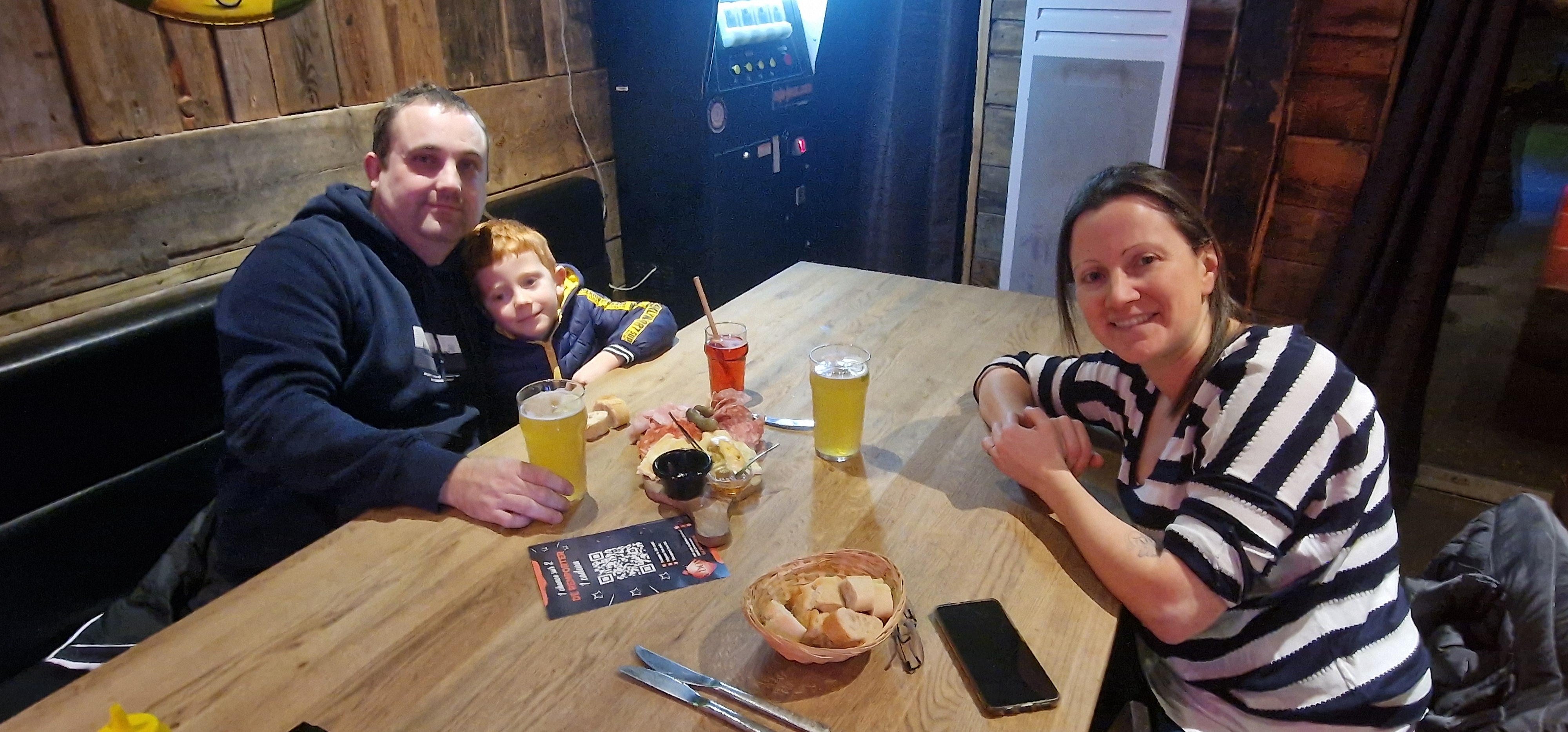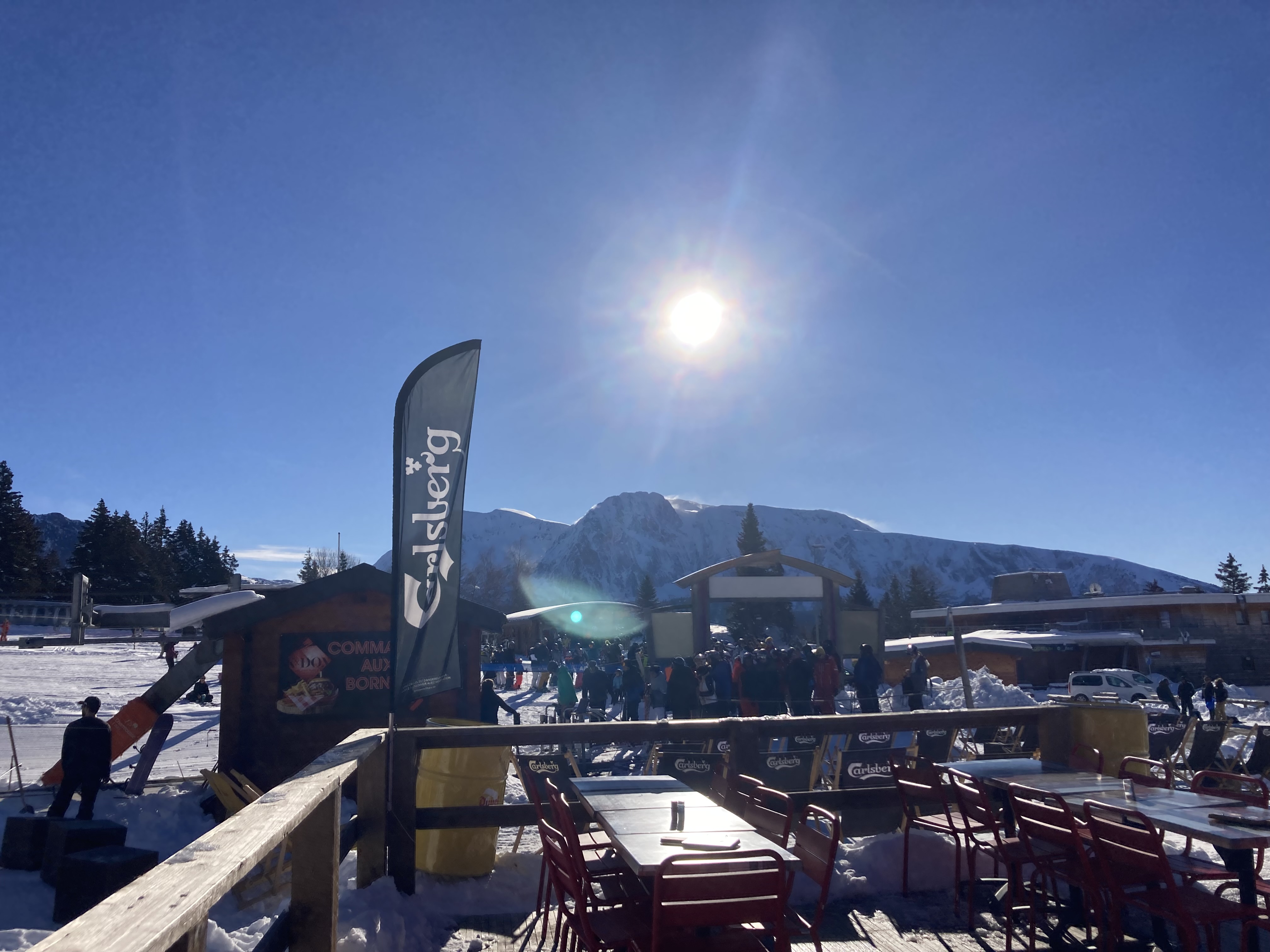 Bonne ambiance, la bière qui fait plaisir après la journée de ski avec la planche copieuse