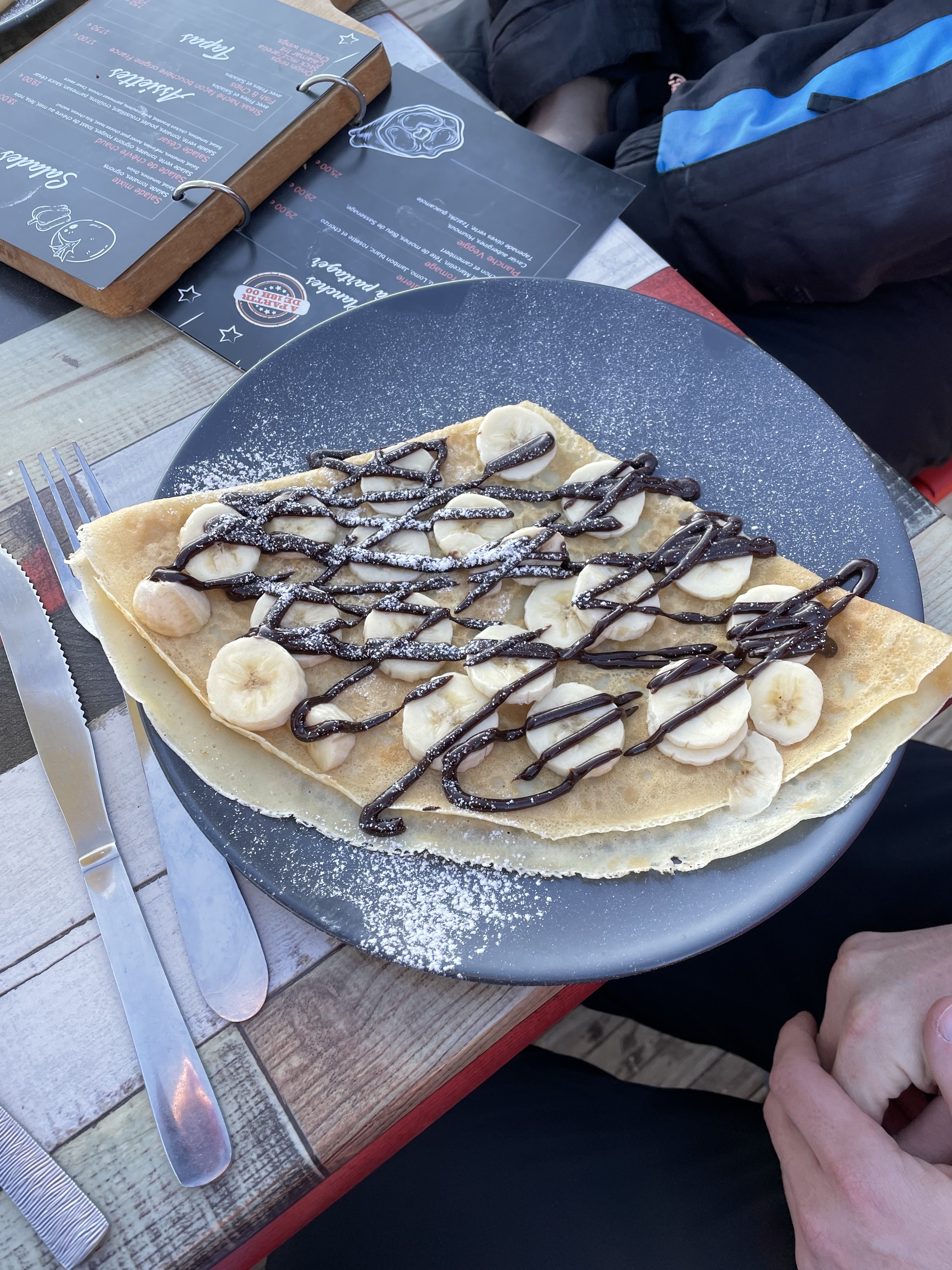 On est resté 3 jours à Chamrousse et c’était un rituel de manger notre crêpe avec chocolat chaud chez vous.un service rapide et une très bonne crêpe au Nutella.