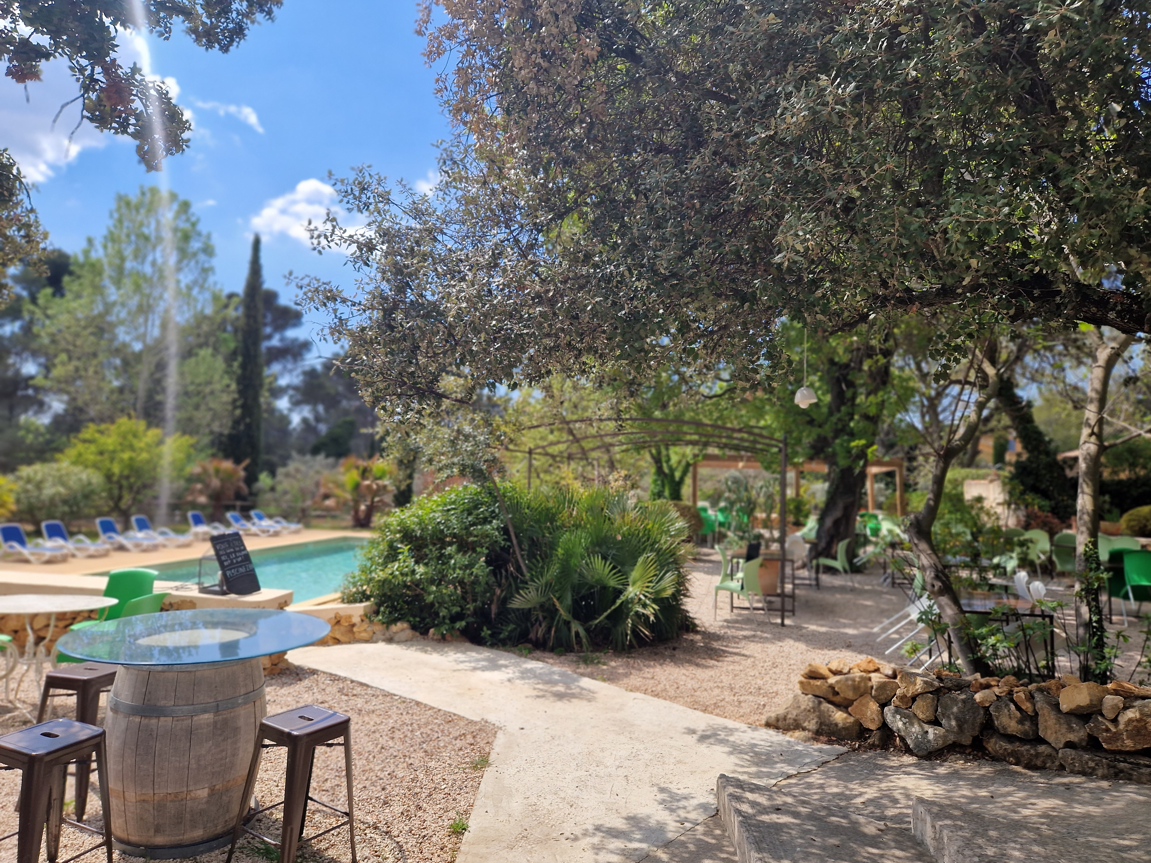 Une oasis parmi les arbres, les 2 piscines... Et un accueil chaleureux, une restauration maison aux produits frais. Vraiment agréable pour une fête de famille où les enfants peuvent jouer, se baigner en toute sécurité. J'y retournerai en couple pour être au frais des ombres, au bord de la piscine avec une bonne restauration. Un petit paradis à l'écart de l'agitation. Félicitations !