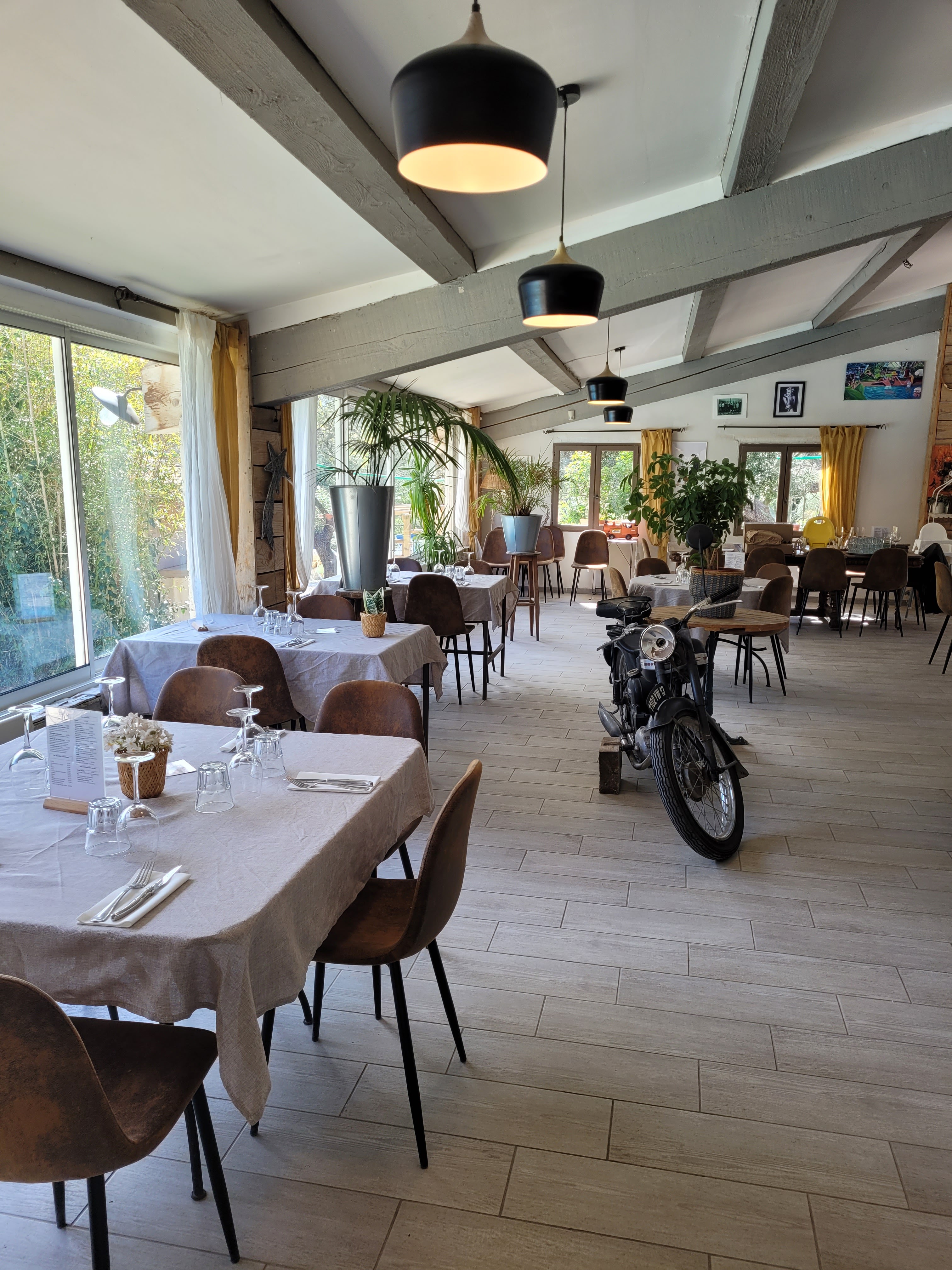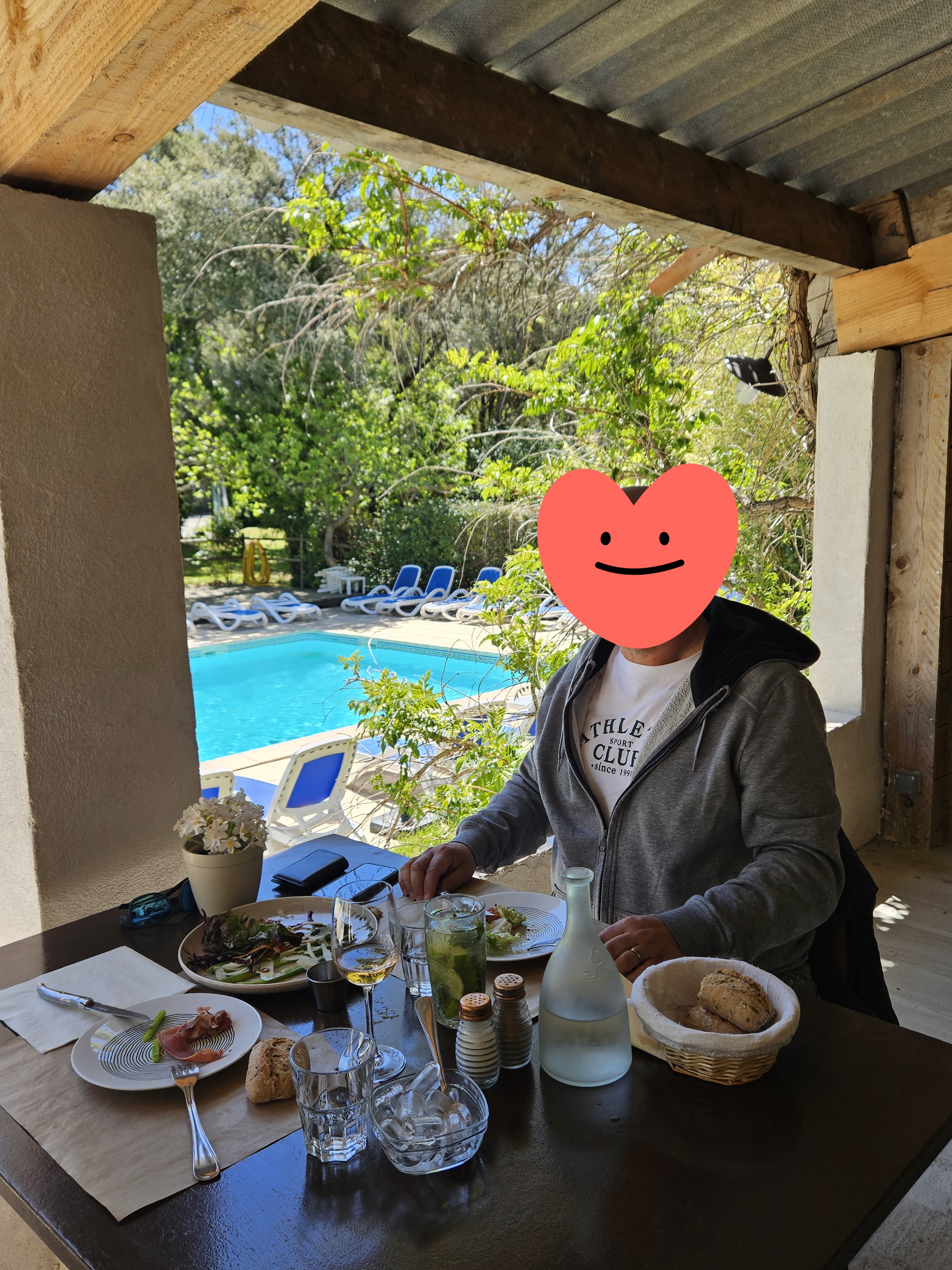 Un repas dans un cadre plutôt nature et une ap md ensoleillée superbe, pour profiter des extérieurs... Tout était très bon, cependant le prix me paraît un peu excessif pour la quantité. De plus, il faut ajouter une quinzaine d'euros pour l'accès piscine, alors que cela n'était pas le cas par le passé. Ce lieu mérite de s'arrêter et partager un bon moment, une fois réservé (ne pas oublier).