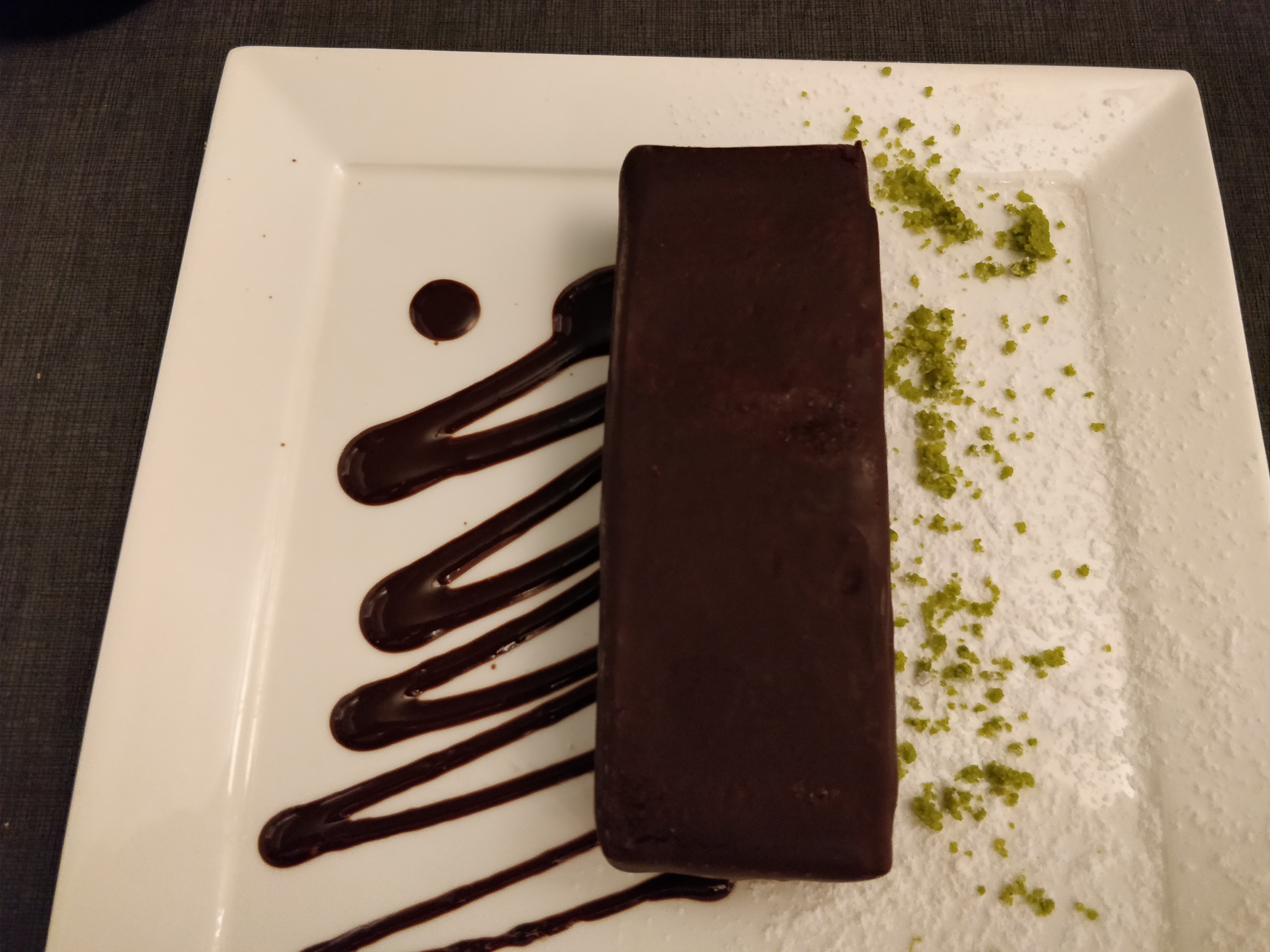 Salle très froide, je parle de la température. Les plats était servis froids aussi d'ailleurs. Pour ma part, j'ai eu en plat principal, un morceau de gras de porc, entouré d'une cuillère de purée, et de quelques pousses d'épinards... heureusement que l'unique serveuse pour l'ensemble de la salle était sympathique..