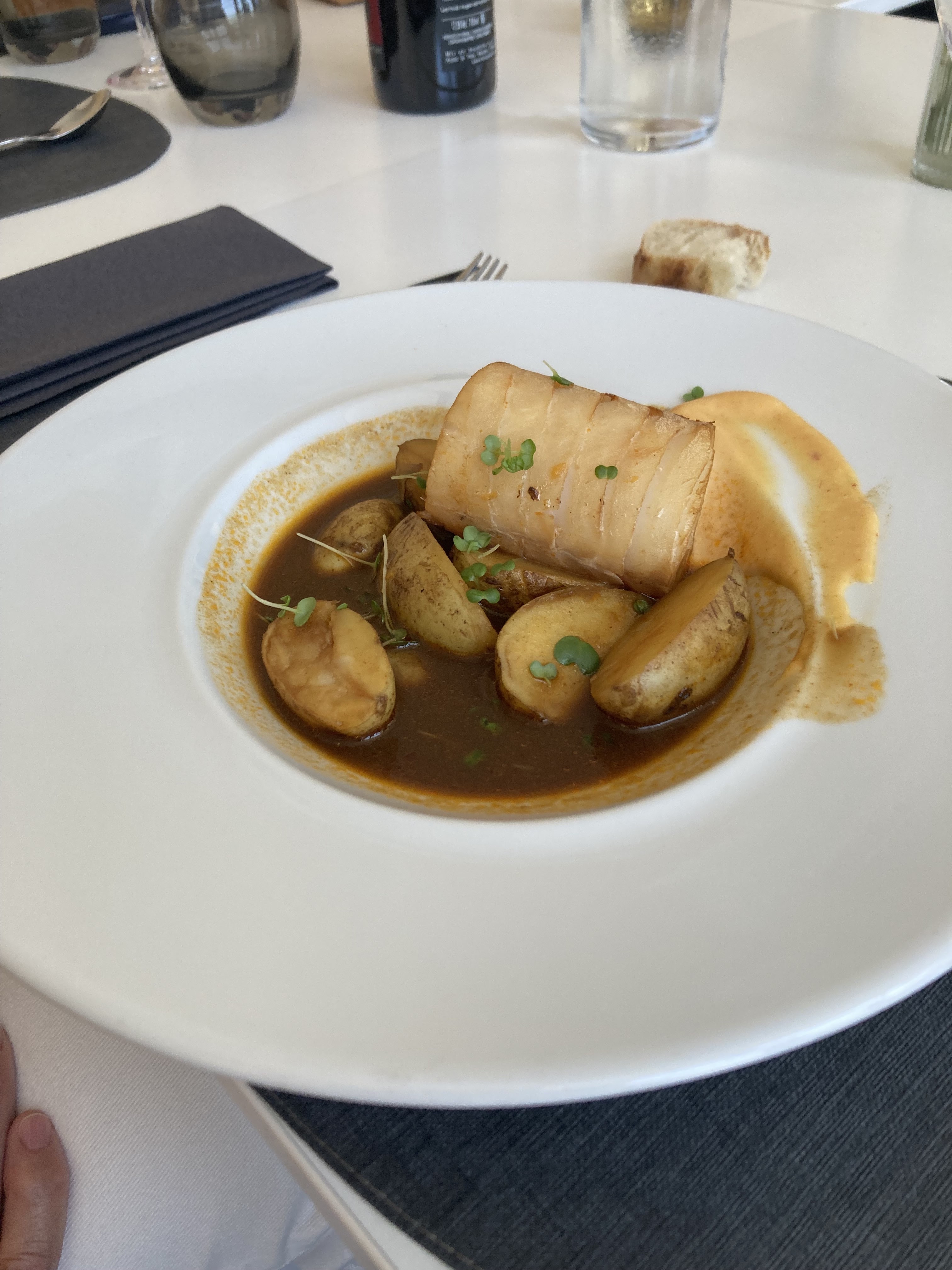 J'ai été déçue par le plat principal choisi ce jour (le 20/02/2024), poitrine de porc. J'ai eu un gros morceau posé au milieu de l'assiette (très gras, 1/4 de viande seulement et difficilement coupable) avec 3 à 4 feuilles d'épinards. Dommage, car l'entrée et le dessert étaient top. À retirer de la carte ou à présenter différemment..........