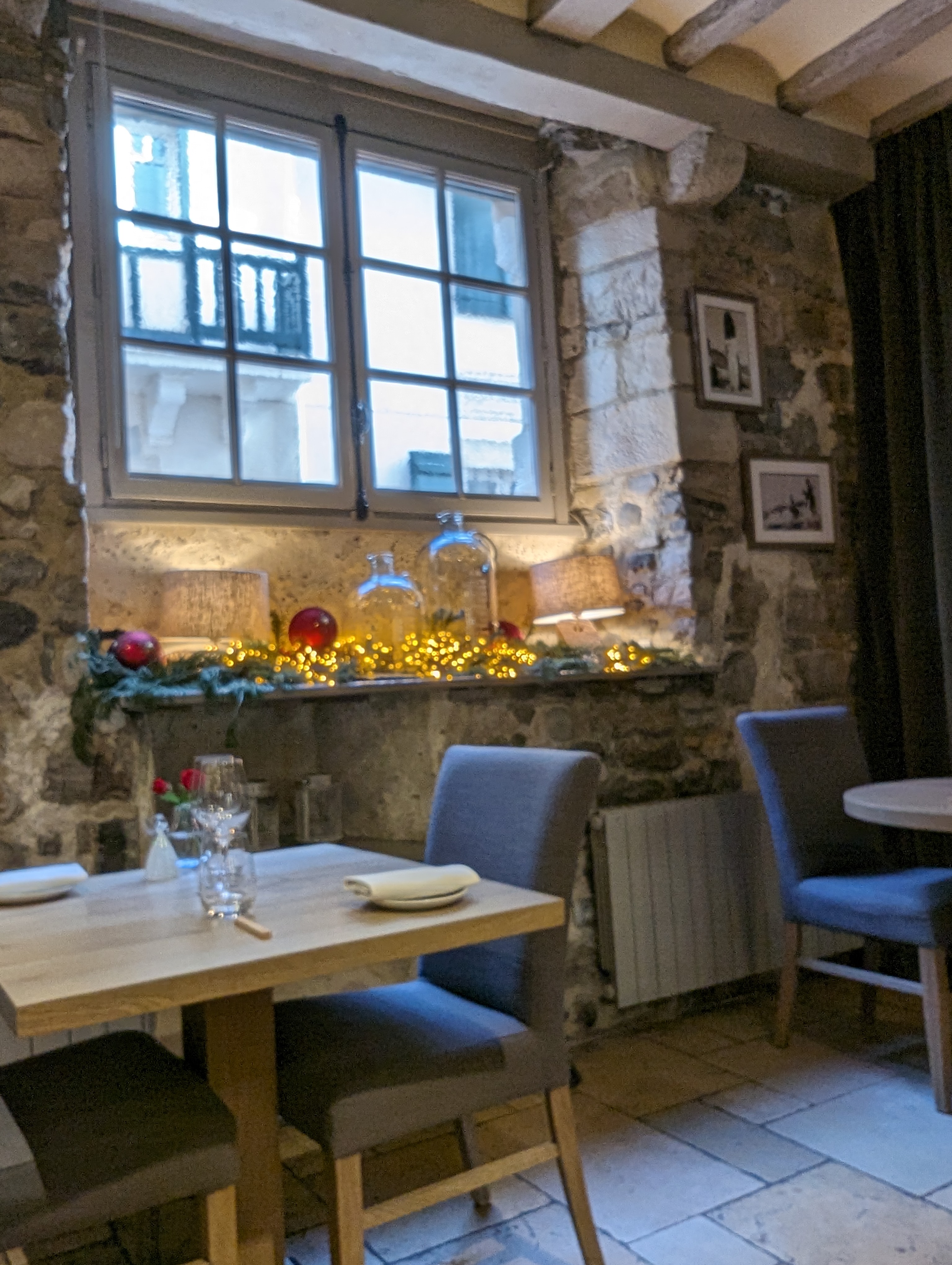 Bel endroit, cuisine élaborée, fine. Service parfait. Budget €€€. Accès PMR non normé (vieux murs de la ville) mais les serveurs sont là pour aider à passer la marche.