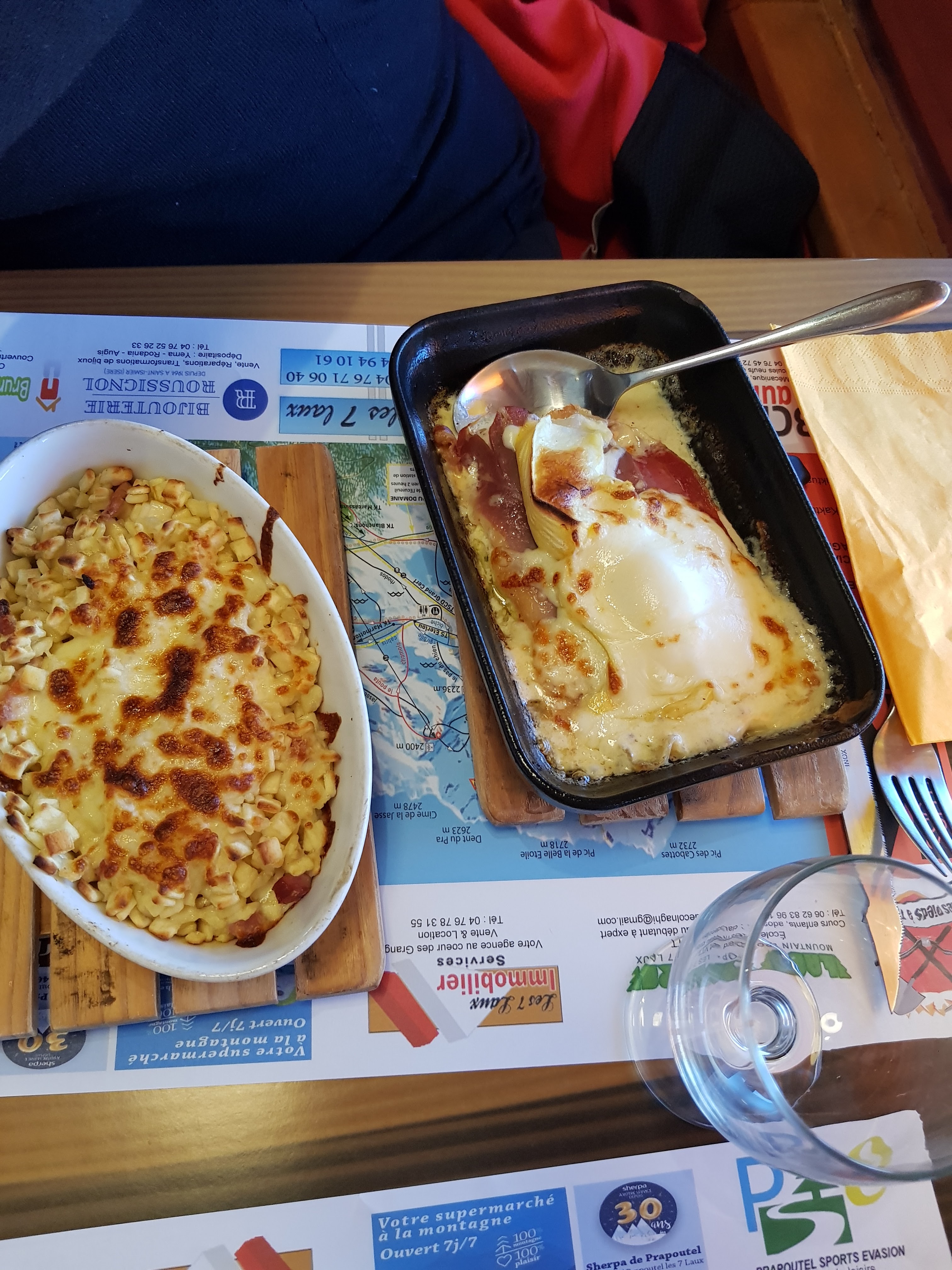 Petit apéro au coin du feu pour les premières neiges, puis une superbe croziflette accompagnée d'un bon rouge de Savoie, un super accueil. On reviendra.