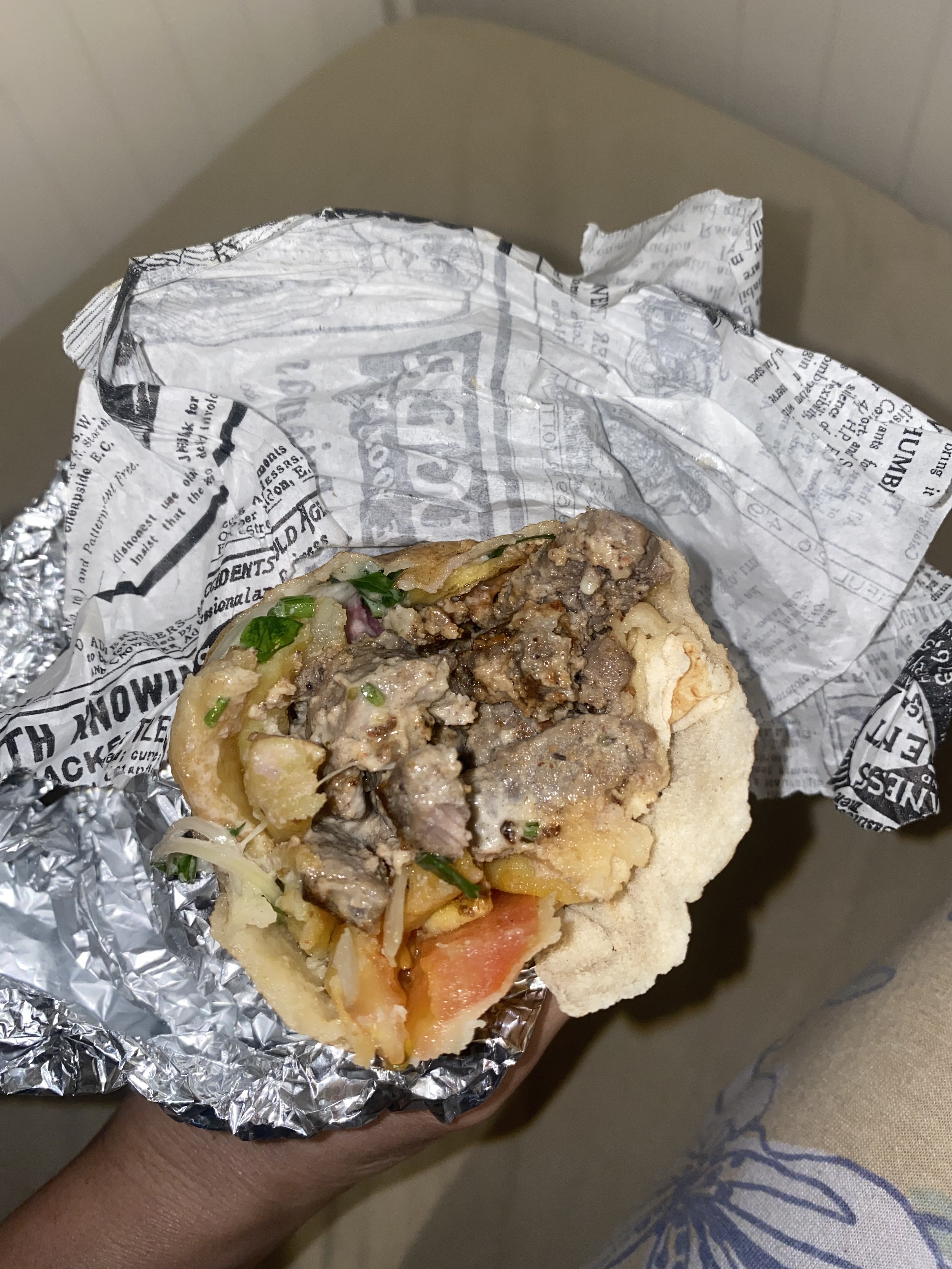 Erreur de commande, nous avons commandé 2 shawarmas et des falafels, nous avons finalement reçu 3 shawarmas, contentes et déçues à la fois. Le goût y est, c'est très savoureux cependant la galette est trop sèche et s'effrite, bien dommage...
