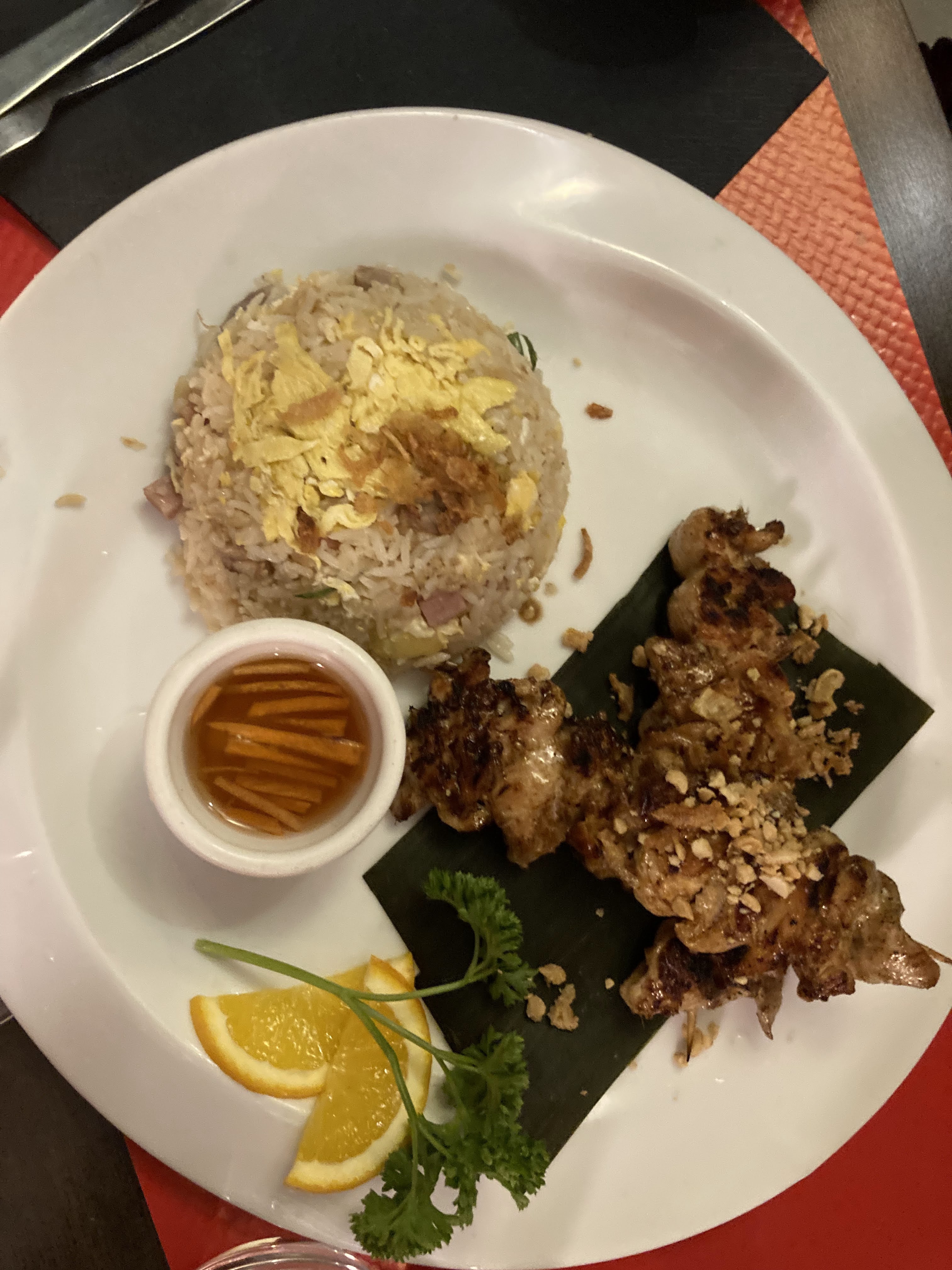 La nourriture est tout simplement correcte. Pas accueillant, car personnel médiocre. Attention si vous mangez dehors : beaucoup de moustiques...gros moustiques...le prix est trop élevé...mais vous êtes dans une vraie ambiance asiatique !!