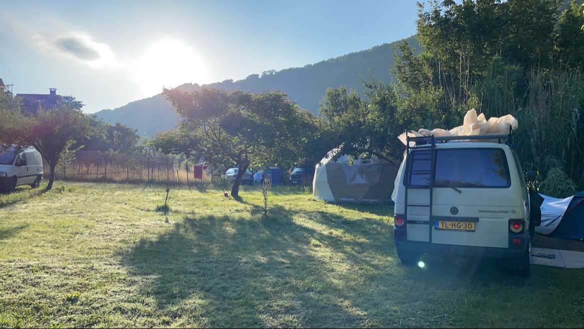 Vraiment super camping avec « propre » accès à la rivière. Nous sommes venus sans nous inscrire et on nous a immédiatement donné une place pour nos tentes. Le camping offrait des emplacements ombragés entre les arbres et nous étions libres de choisir. Nous n'avons pas eu besoin d'un raccordement à l'électricité ou à l'eau pour une nuit. Les sanitaires étaient soignés et propres. Les installations sont bonnes pour un camping. Seul l'accès en pente pourrait constituer un défi pour les conducteurs inexpérimentés (pour les voitures avec caravanes). Nous n'avons eu aucun problème avec les motos... Les hôtes étaient super sympas et la gamme de plats préparés était très bonne. Le soir, nous avons eu un plateau de produits locaux (saucisses, fromages, etc. - également disponibles en veggi) et des gaufres maison avec de la confiture spécialement préparée. Le petit déjeuner était également très bon. L'endroit est très cosy, vous pouvez donc passer la nuit ensemble en plein air avec une bouteille de vin :-) Si le hasard nous ramène dans la région, nous reviendrons avec plaisir.