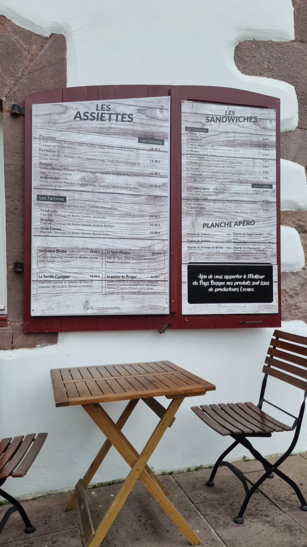 Bien copieux et bien assaisonner pour la salade basque , et planche tapas chaude ainsi que croque brebis délicieux et onctueux 👍😉 excellent a conseiller