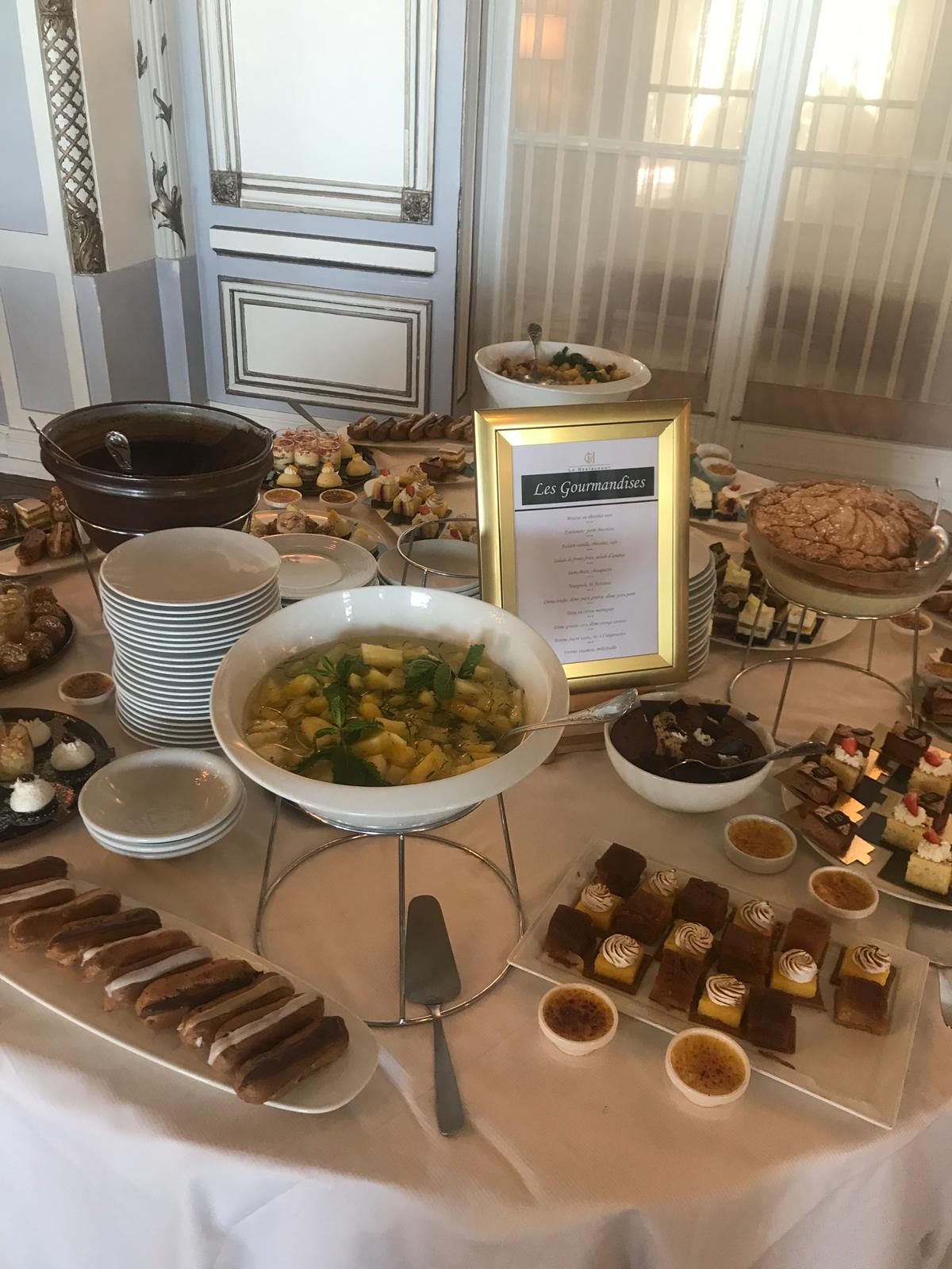Beau buffet à volonté à 75 euros (boissons comprises) le dimanche entre 12h30 et 14h30. Un stand d’entrées froides, un stand de fruits de mer, un stand de viandes et poissons, un stand de fromages et un stand de desserts pour terminer. Le tout au son du piano (principalement de la variété française, agrémentée de quelques mazurkas de Chopin). À faire si on est de passage à Cabourg.