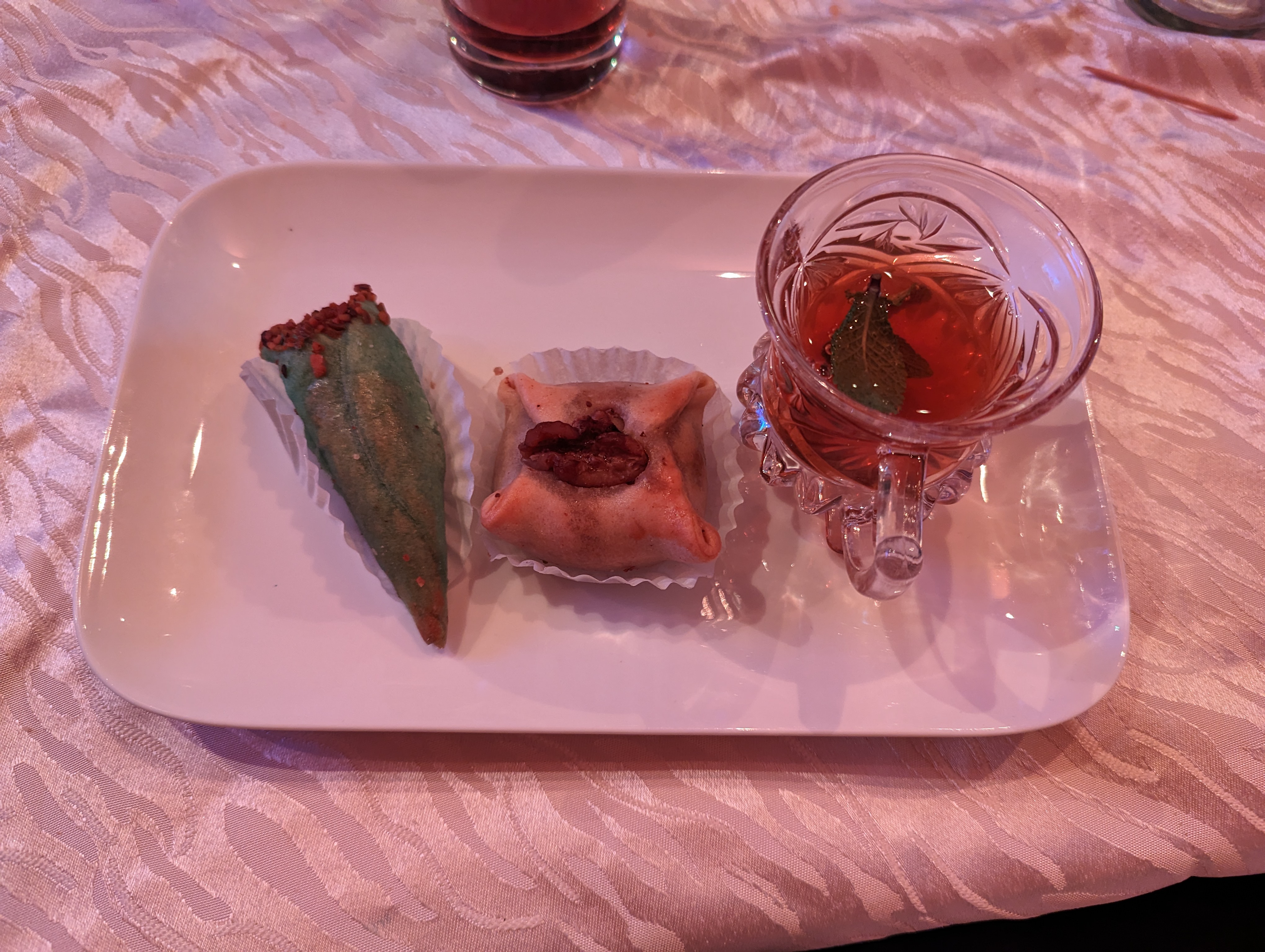 Accueil chaleureux et tout était bon : tajines, thé à la menthe et pâtisseries. On s’est régalé. On reviendra, c’est sur !