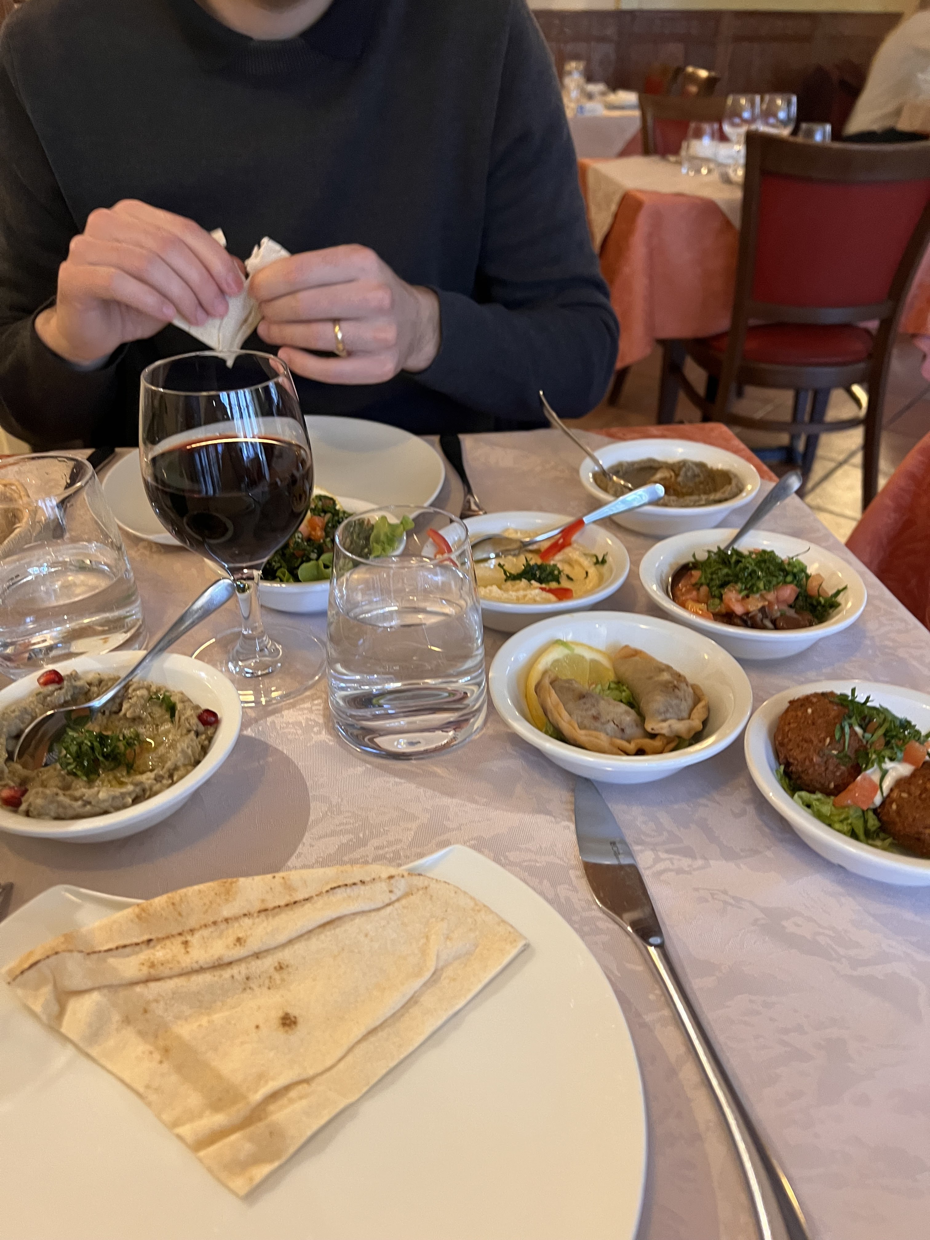 Mezze très bien. Le vin de la maison mérite d'être testé... Nous avions réservé pour une douzaine, le service a été très accomodant.