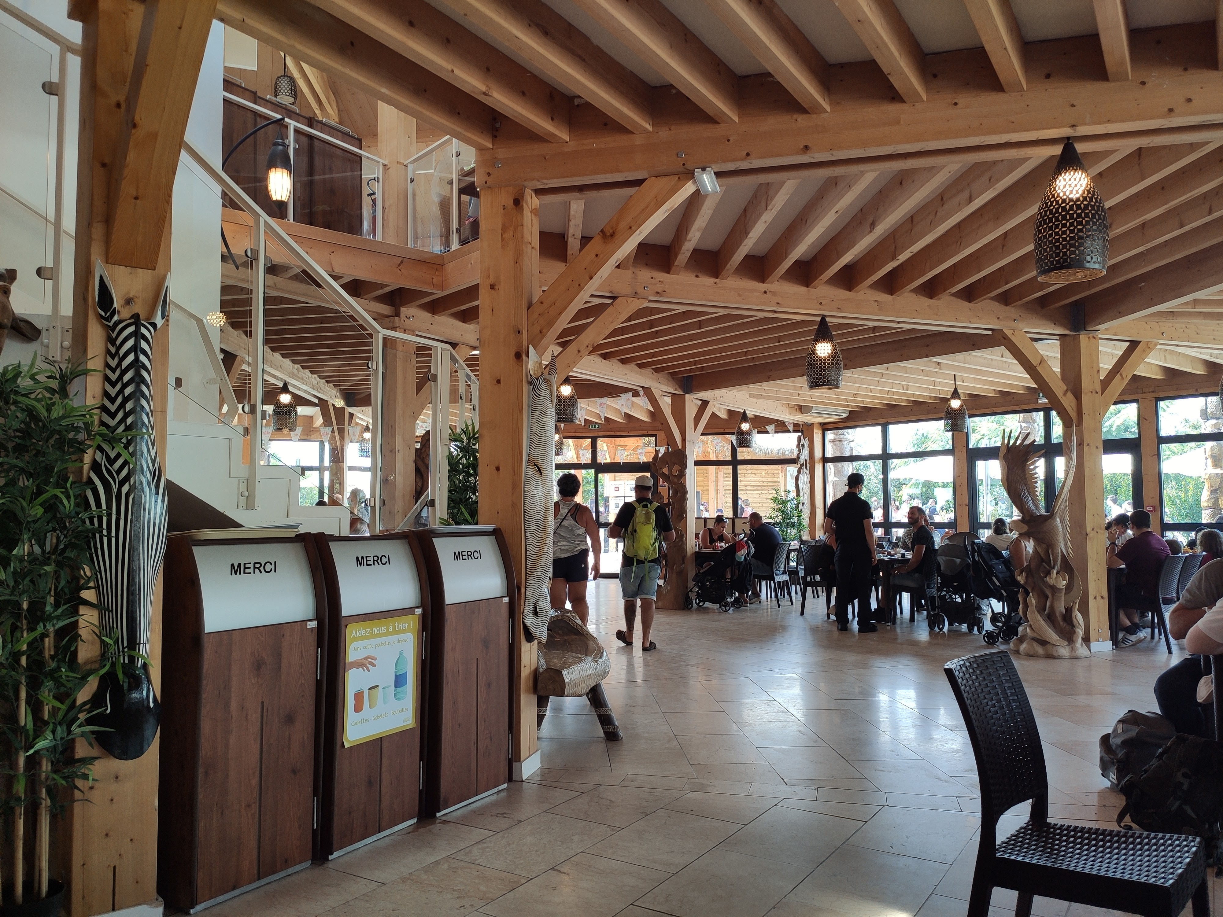Un restaurant magnifique d'extérieur mais la nourriture qui y est servie est très médiocre et chère pour ce que c'est. Nous avons d'ailleurs eu la mauvaise surprise de trouver un gros pince oreille mort dans la salade de ma fille. Nous n'avons pas pu finir nos plats, et pour cause. Dommage que Beauval ne soit pas plus regardant sur la qualité de sa restauration.