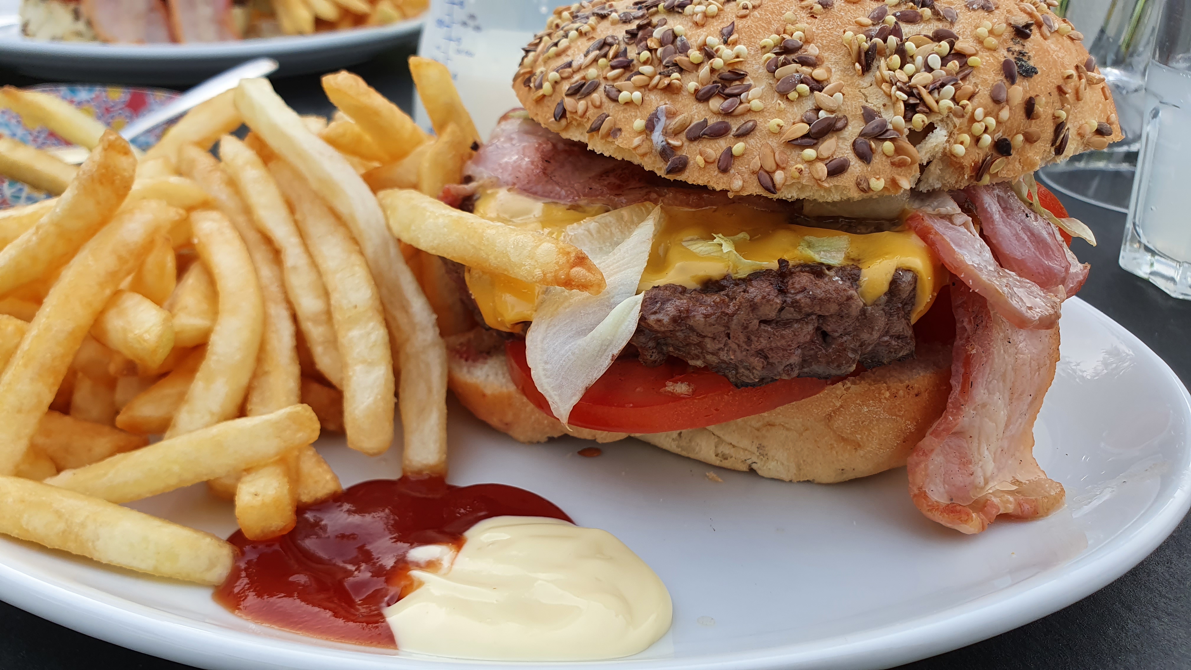 Excellent hamburger, superbe vue
