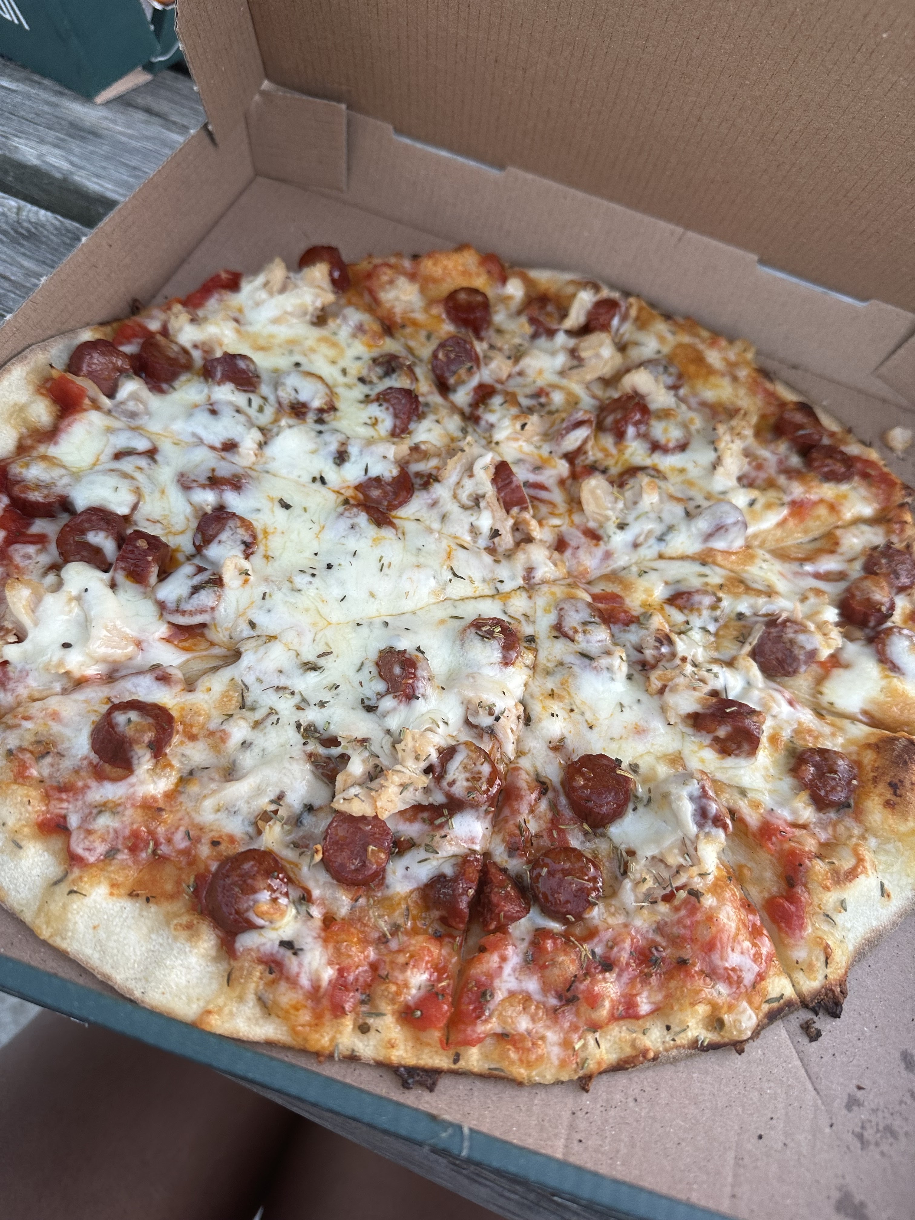 Commande prête à l'heure et pizza très bonne. Agréable d'avoir un petit kiosque proche de chez soi.