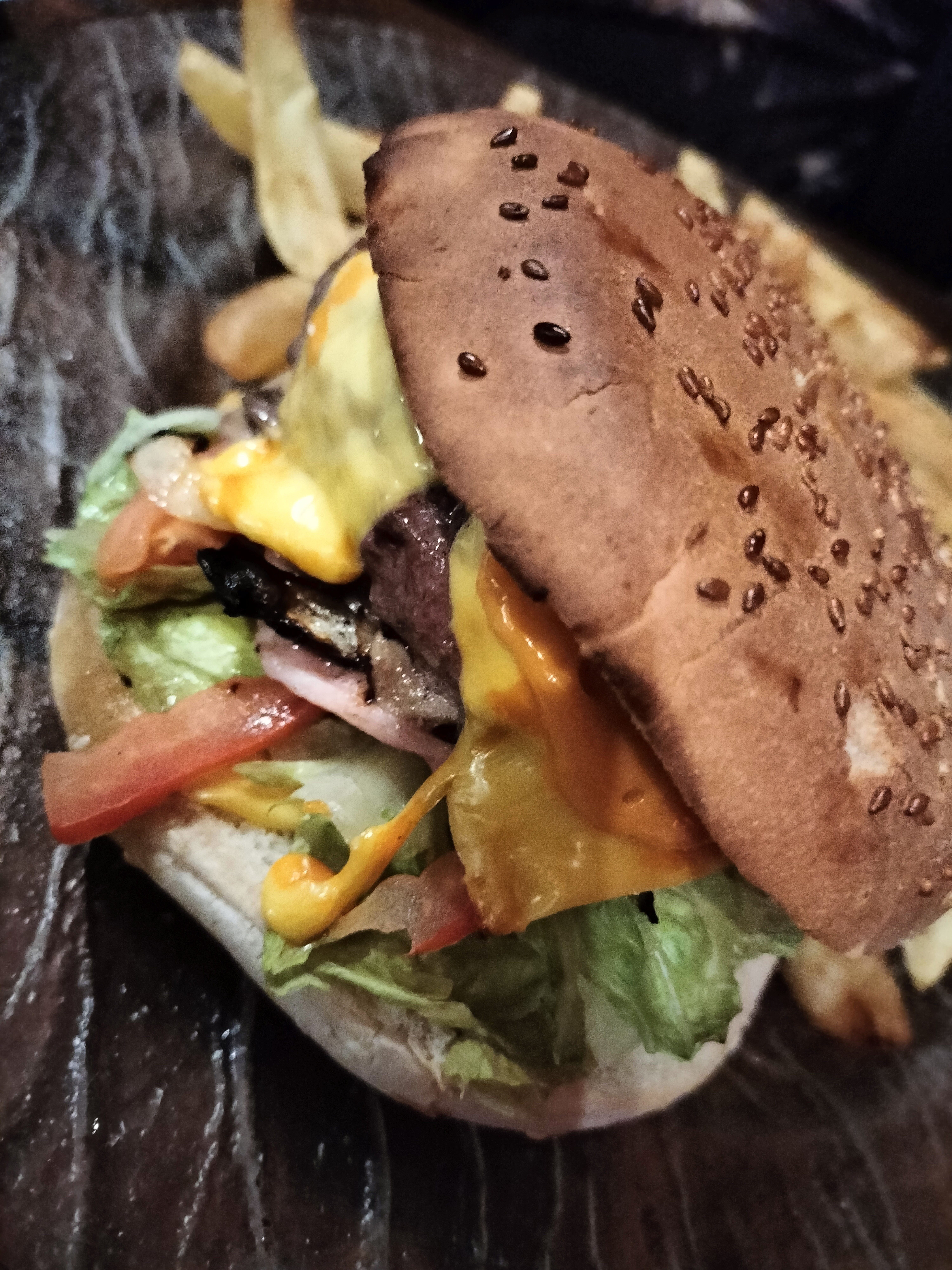 Frites maison mais à mon avis cuite dans huile rance et hamburger bien trop cher pour ce que c'est déçue....