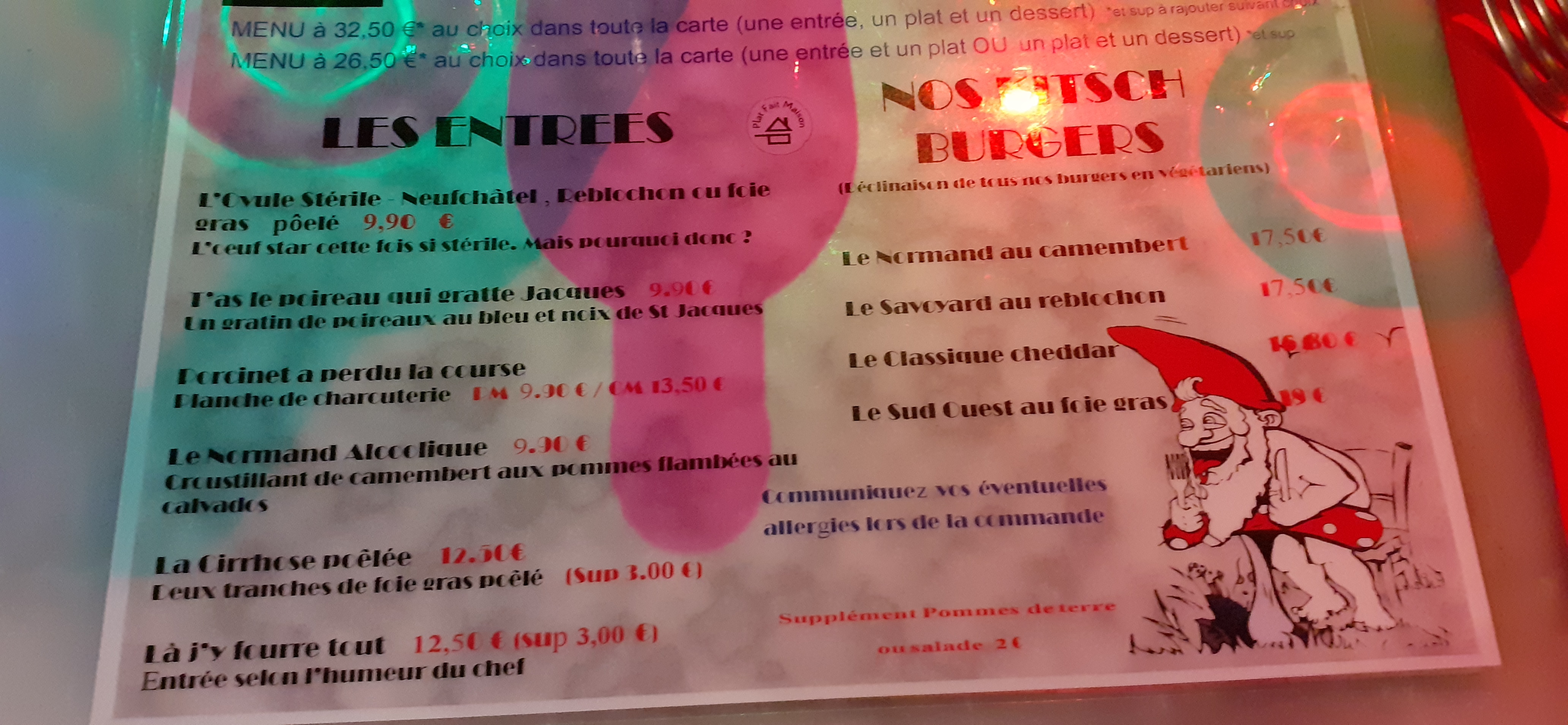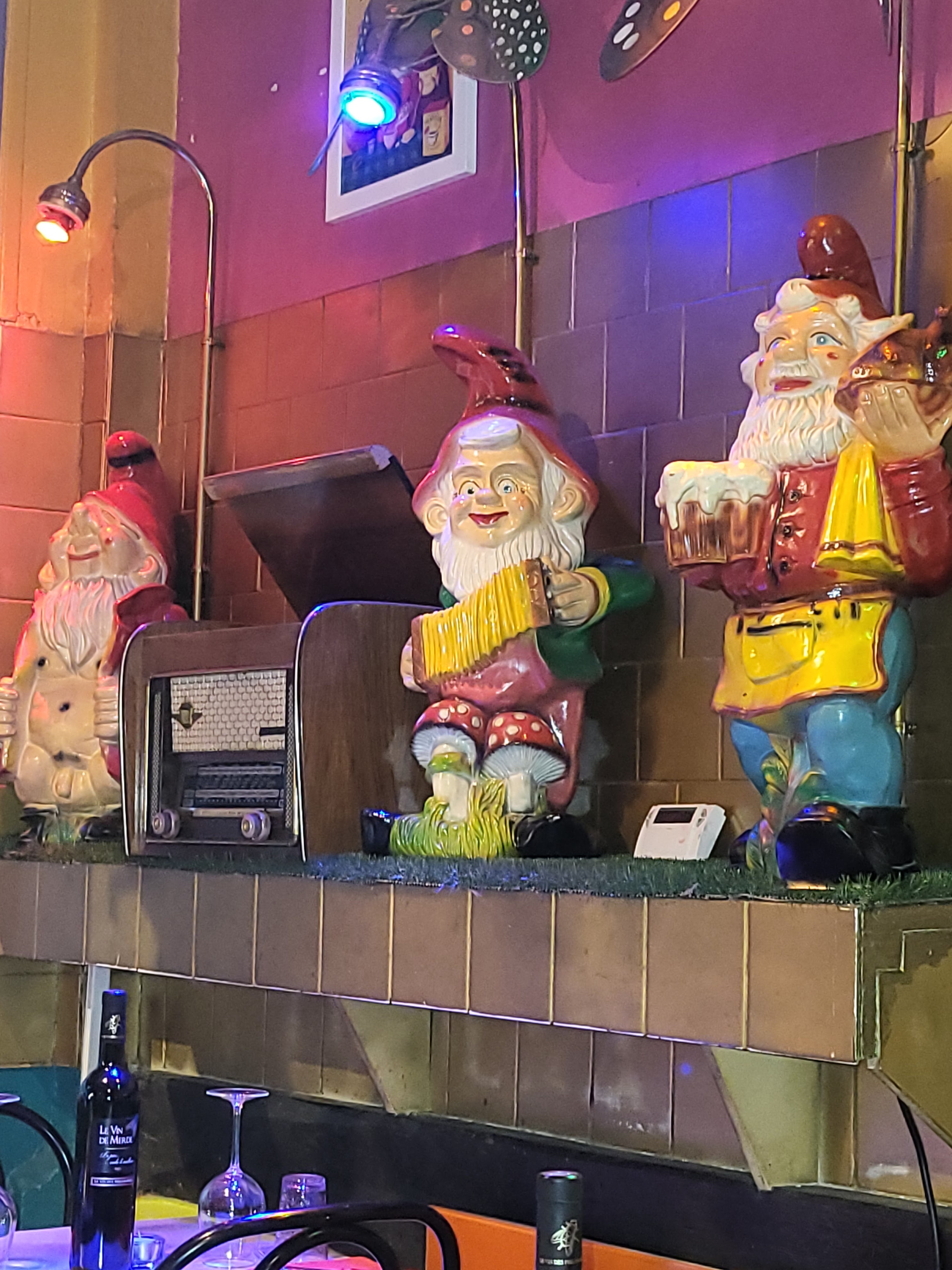 Très bonne accueil de la part du personnel qui est aimable et amusant. Une belle décoration posant une ambiance originale, humoristique et décalée, certe la carte est assez limité, mais elle a le mérite de proposer des plats généreux, bien présenté et de très bonne qualité (renommé de manière amusante), avec des prix et des formule très abordable. C'est dans cette ambiance convivial, entouré de nains de jardin, ainsi qu'avec un bon repas que nous avons passé un très bon moment dans ce restaurant ! Je conseille vivement !