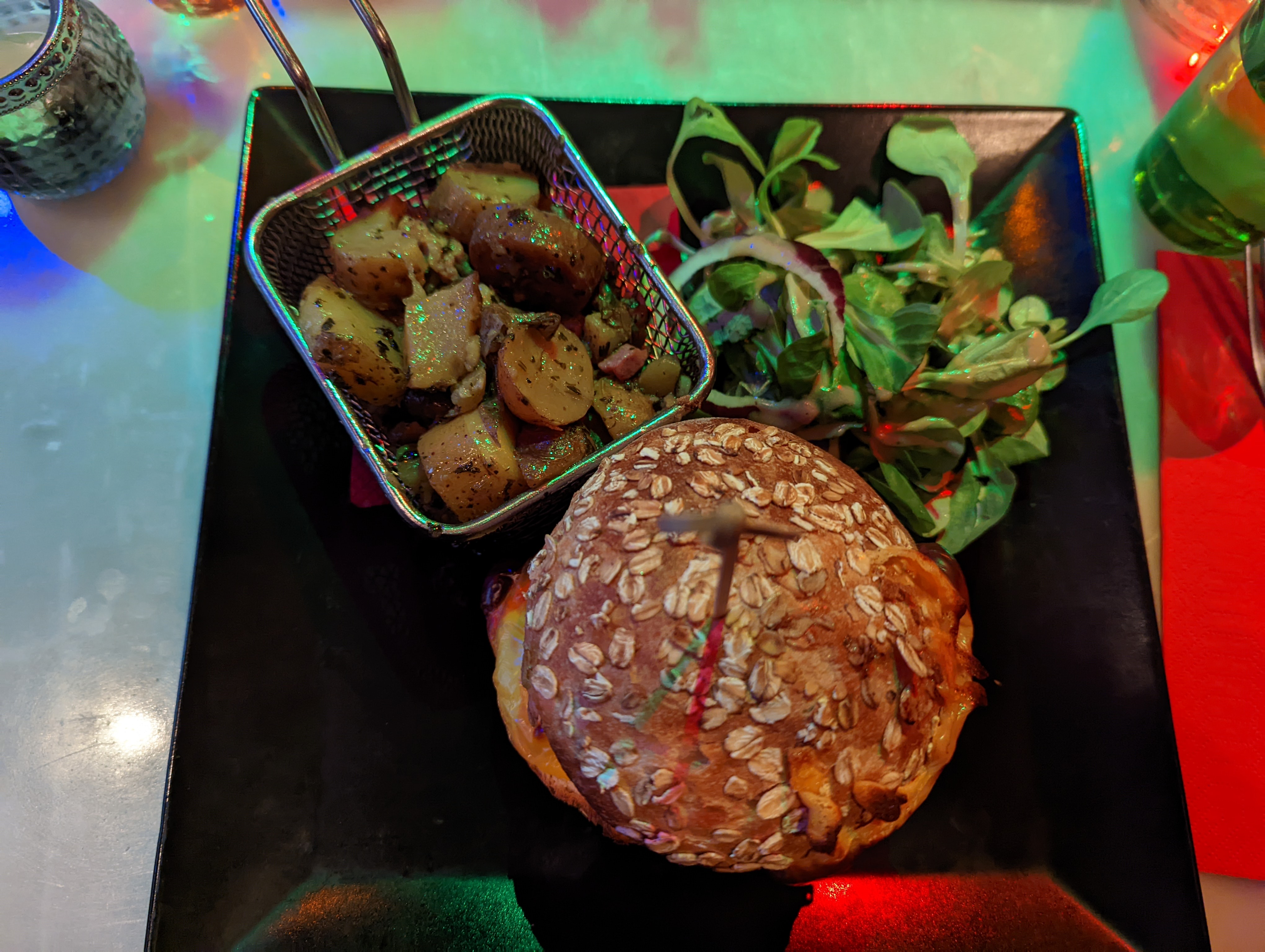 Restaurant sympathique pour une soirée sympa à Rouen. Le personnel est chaleureux et sympathique, le propriétaire vient et vérifie chaque table. Menu amusant, si votre français est un peu rouillé et que vous ne comprenez pas tous les jeux de mots, vous pouvez demander un menu en anglais. Le burger au camembert est délicieux, et les pommes de terre qui l'accompagnent sont étonnantes. Dans l’ensemble, c’est une super expérience.
