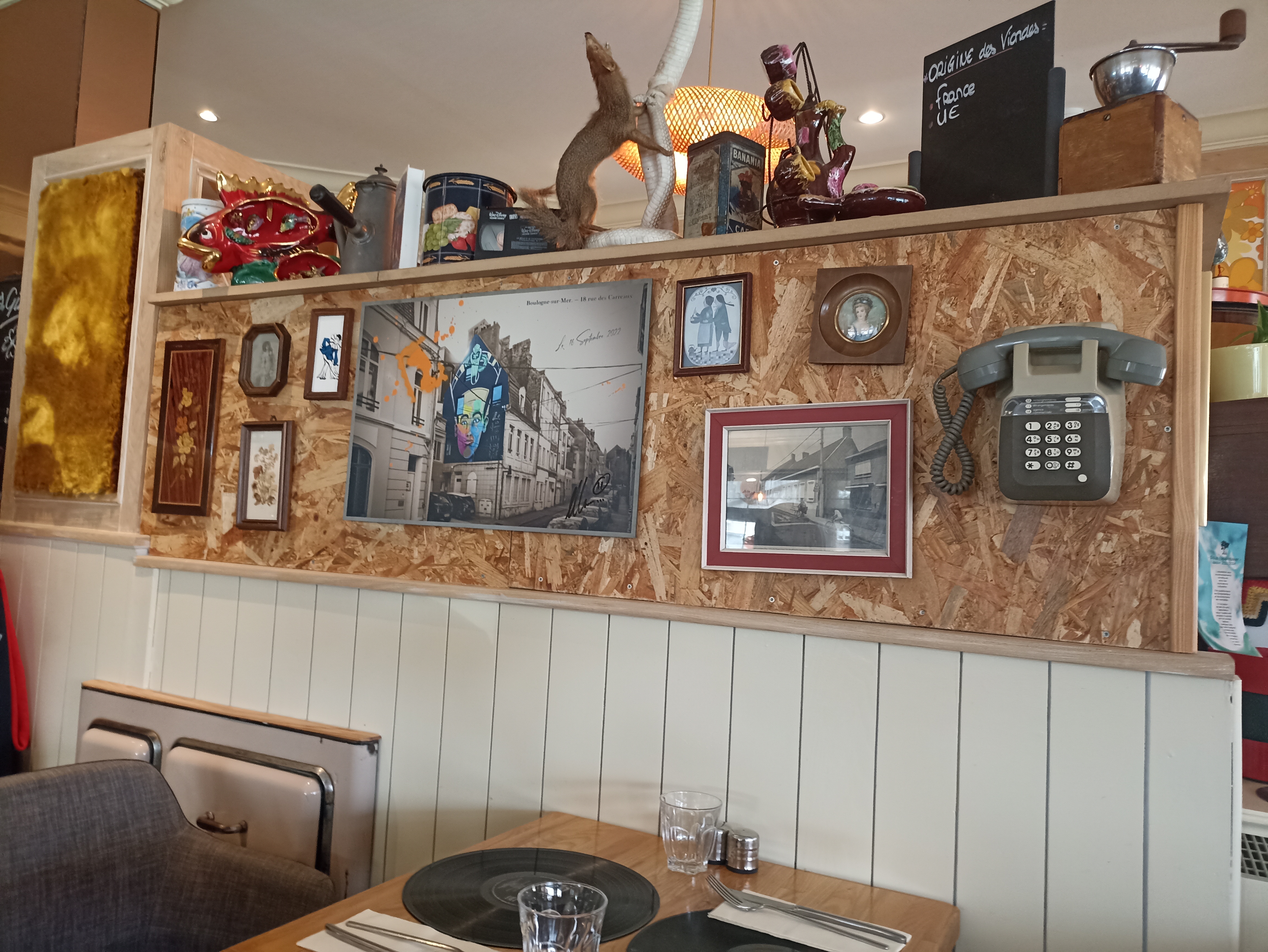 bonjour endroit agréable style retro en déco disque vinyle sur table bon moment dans cet établissement prix correct patron sympa voir photos