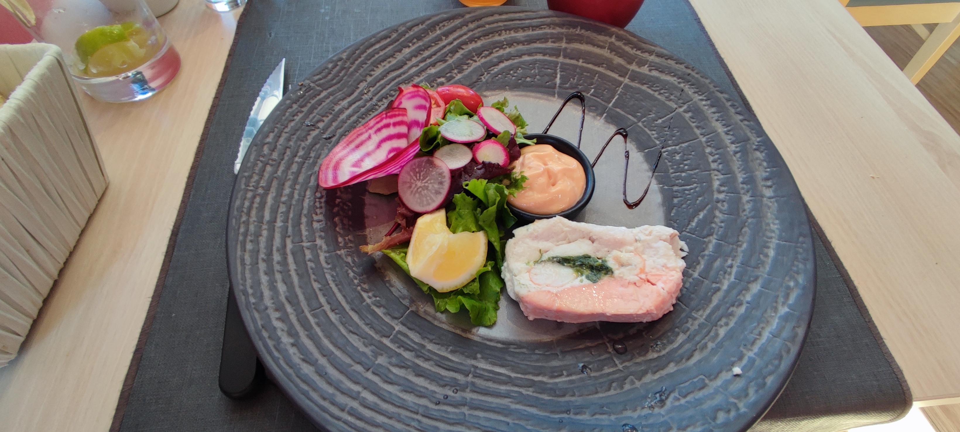 Super restaurant, je valide a fond, mojito parfait. Entrée terrine de poisson super, foie gras pressé délicieux, en plat épée du boucher excellente. La viande super... Ma belle sœur Saint Jacques, elle a adorer. Repas en famille nous étions 10, impeccable, la petite serveuse et la patronne au top... Et la cuisine un régale du début a la fin. Malheureusement g pas toutes les photos mais je recommande.😉🙂
