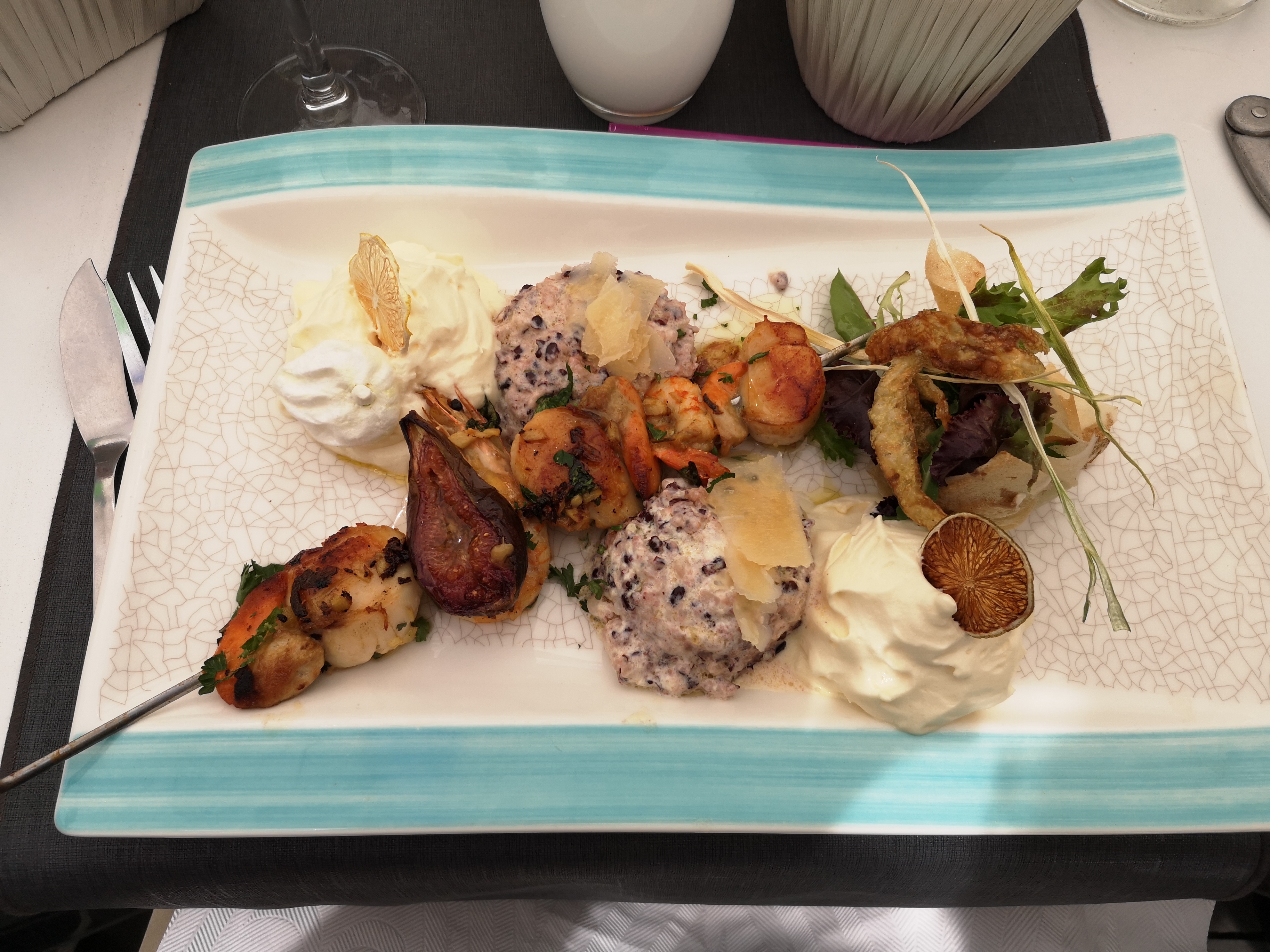 Accueil, ambiance, le jambon et la tapenade pendant l'apéro. Le foie gras maison, le couscous de la mer, la sole meunière, le merlu tagliatelle et les desserts une tuerie. Pour une soirée réussit c'est la et pas ailleurs. Le serveurs Au top, aimable et au ptit soin. 👍. .