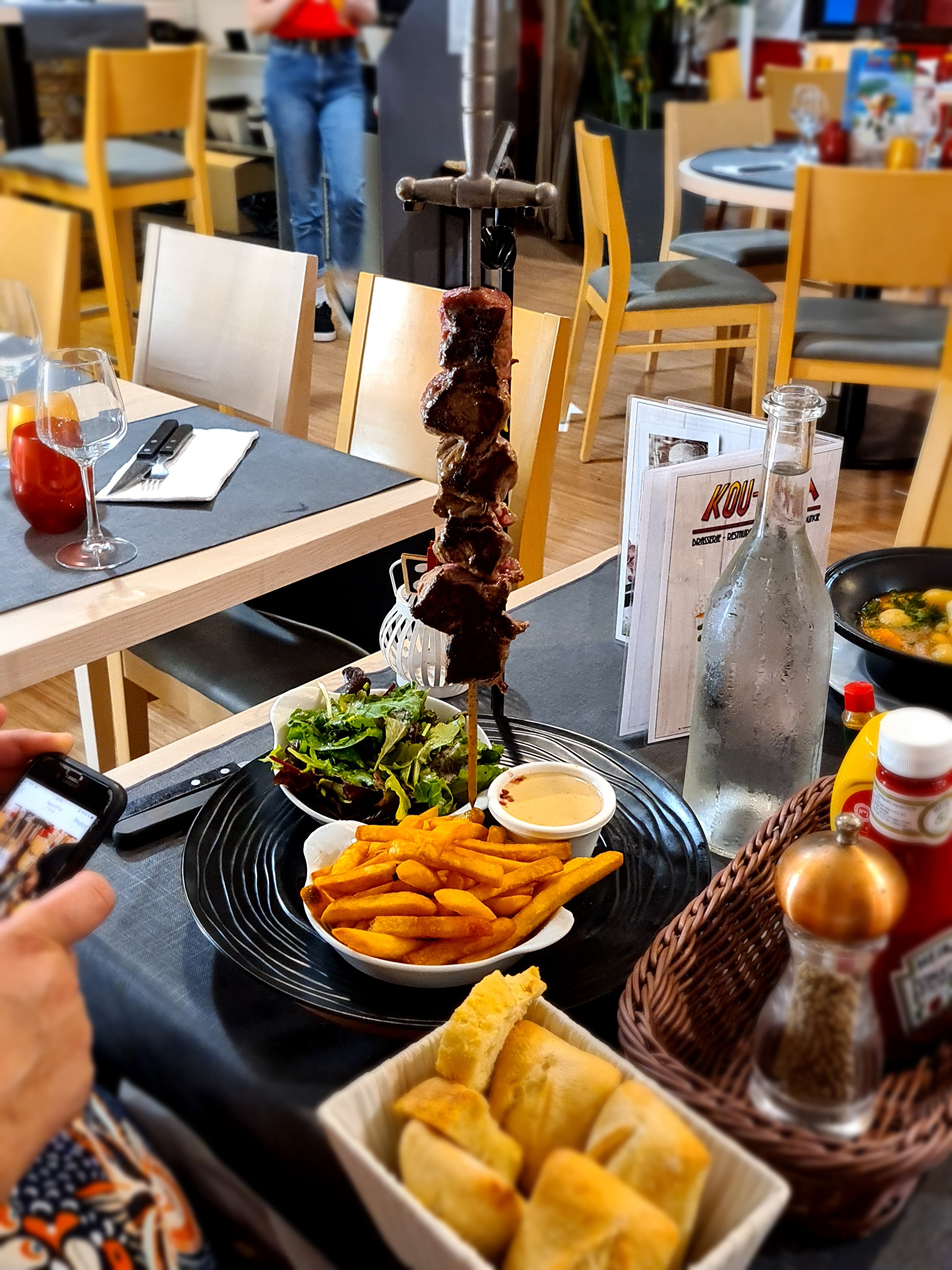 Nous n'avons pas regretté d'avoir poussé la porte du Kou-De-Ta. Très belle surprise et réel coup de coeur. Nous avons été accueillis par une poignée de main de la patronne très souriante et pleine d'énergie. Elle nous raconté l'histoire du nom de son restaurant. Le personnel et plus particulièrement Pierre aux petits soins dès notre arrivée et de bons conseils. Nous nous sommes régalés de l'apéritif au dessert. Belle présentation des plats qui sont excellents et copieux. Mon tournedos Rossini était succulent. Très bon rapport qualité prix. Le cadre est original. Merci à toute l'équipe pour ce bon moment et à une prochaine fois lors de notre prochain sejour. Nous recommandons les yeux fermés