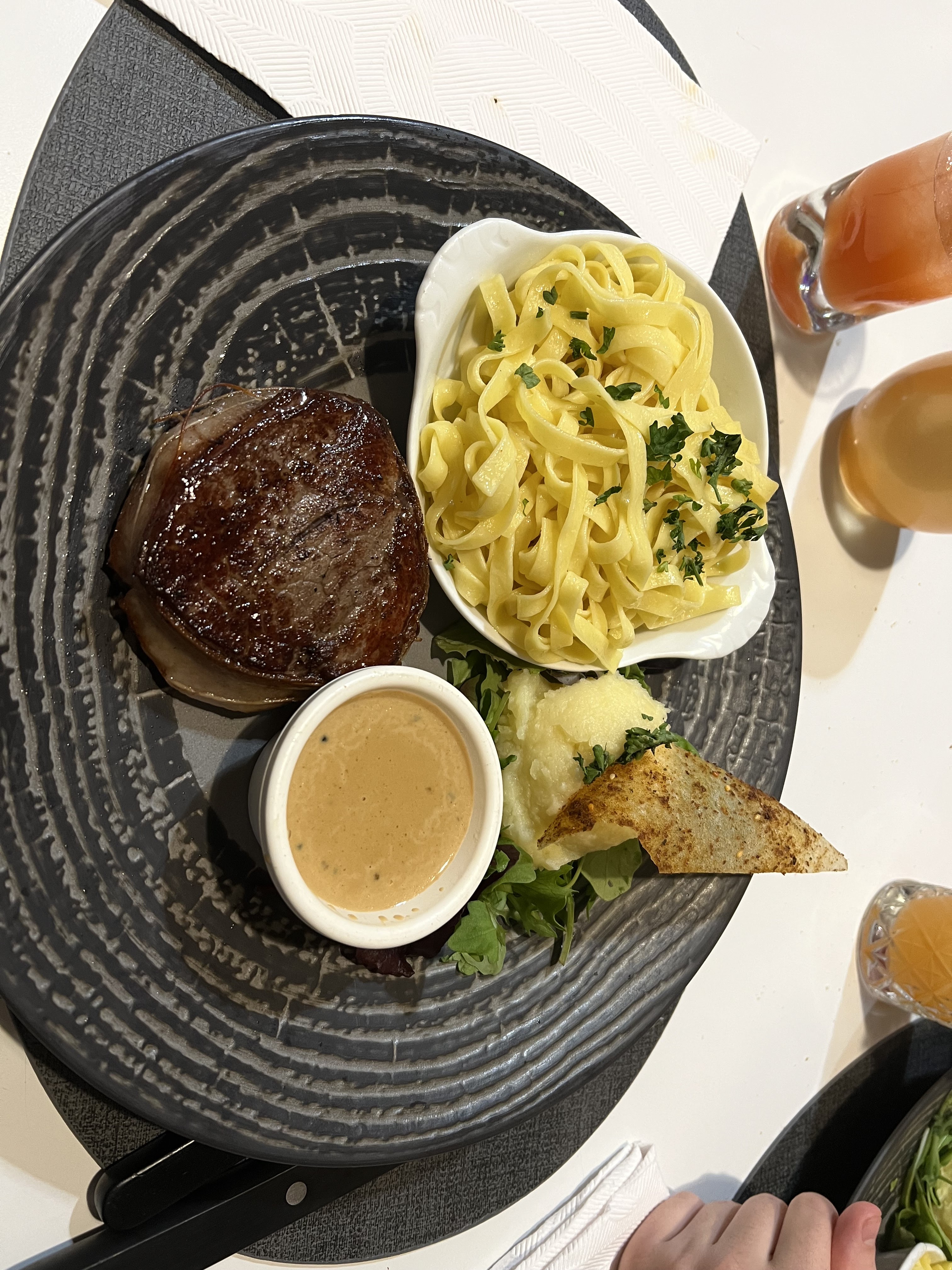 Excellent : l’accueil, l’apéritif, l’entrée, les plats… tout était parfait. On a pas pu prendre de desserts tellement on a bien mangé 😌