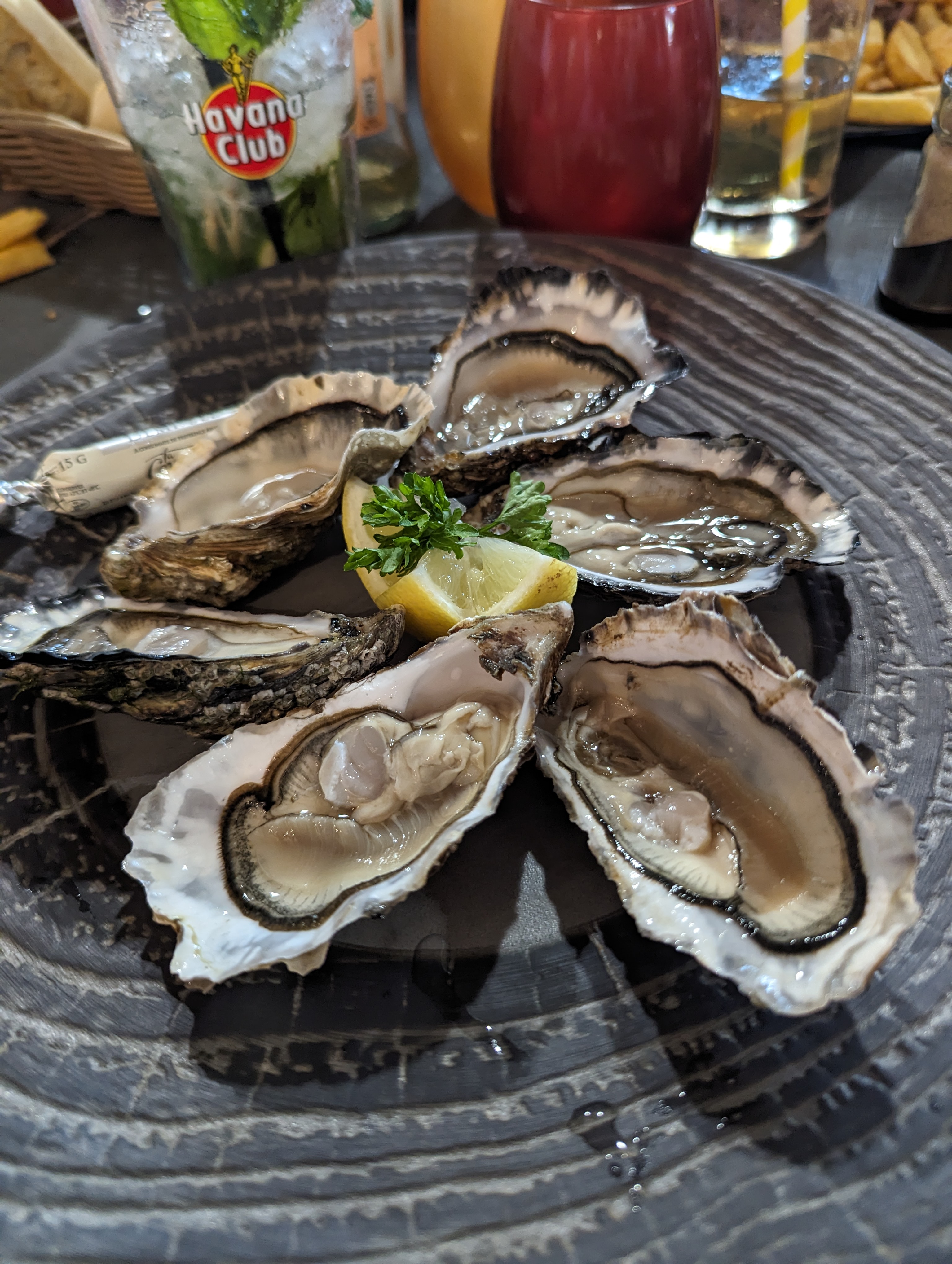 Viande et poisson frais et cuit à la perfection 10 variétés de mojito ( mojito pinacolada vraiment delicieux) Du personnel professionnel et au soin Un menu varié et des recettes très intéressantes