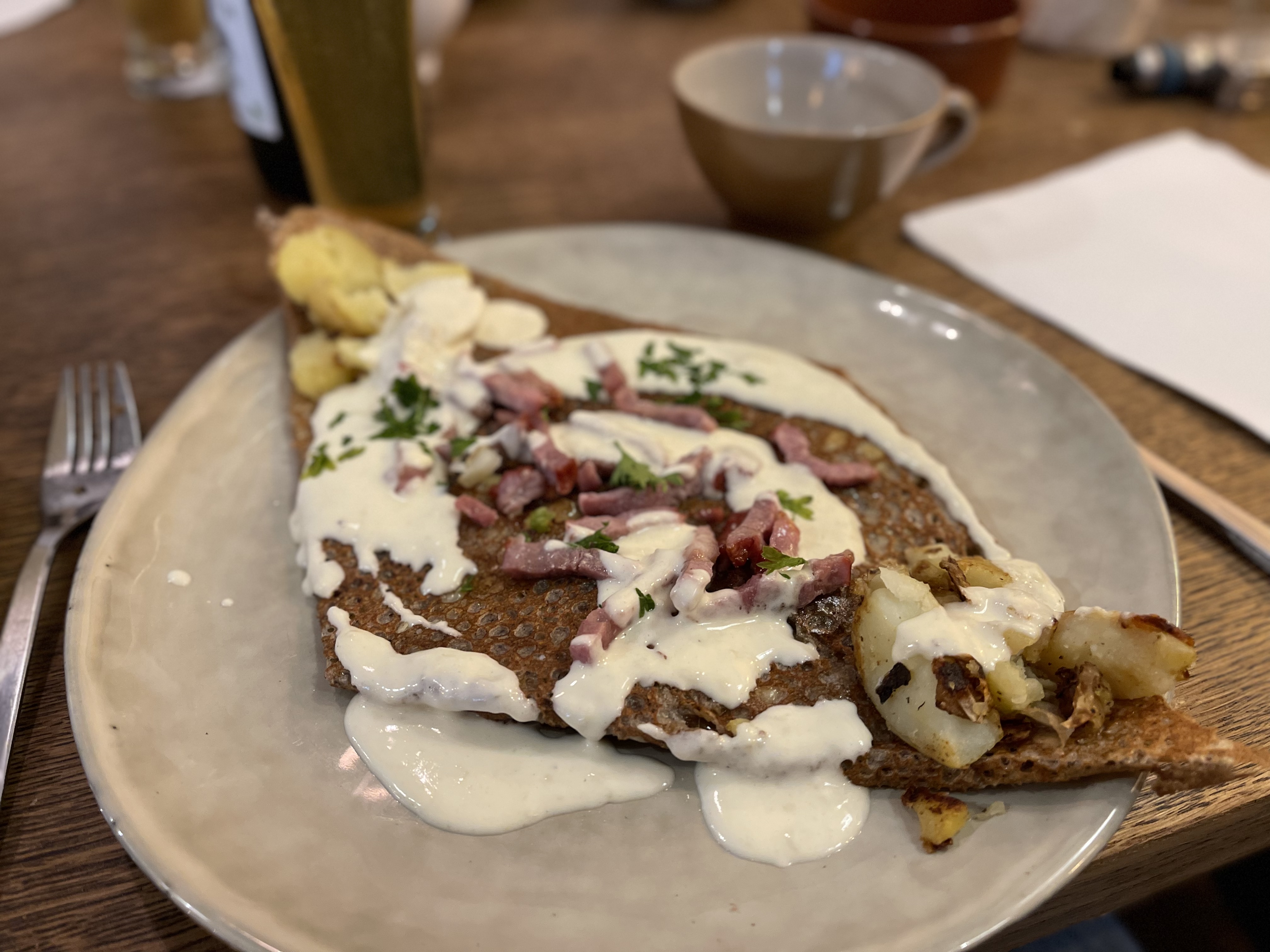 Nous avons très bien mangé, il ne restait plus qu'une galette aux St Jacques, nous avons eu le droit à un petit duo de galette dans notre assiette comme cela nous avons pu goûter chacune celle aux St Jacques.
