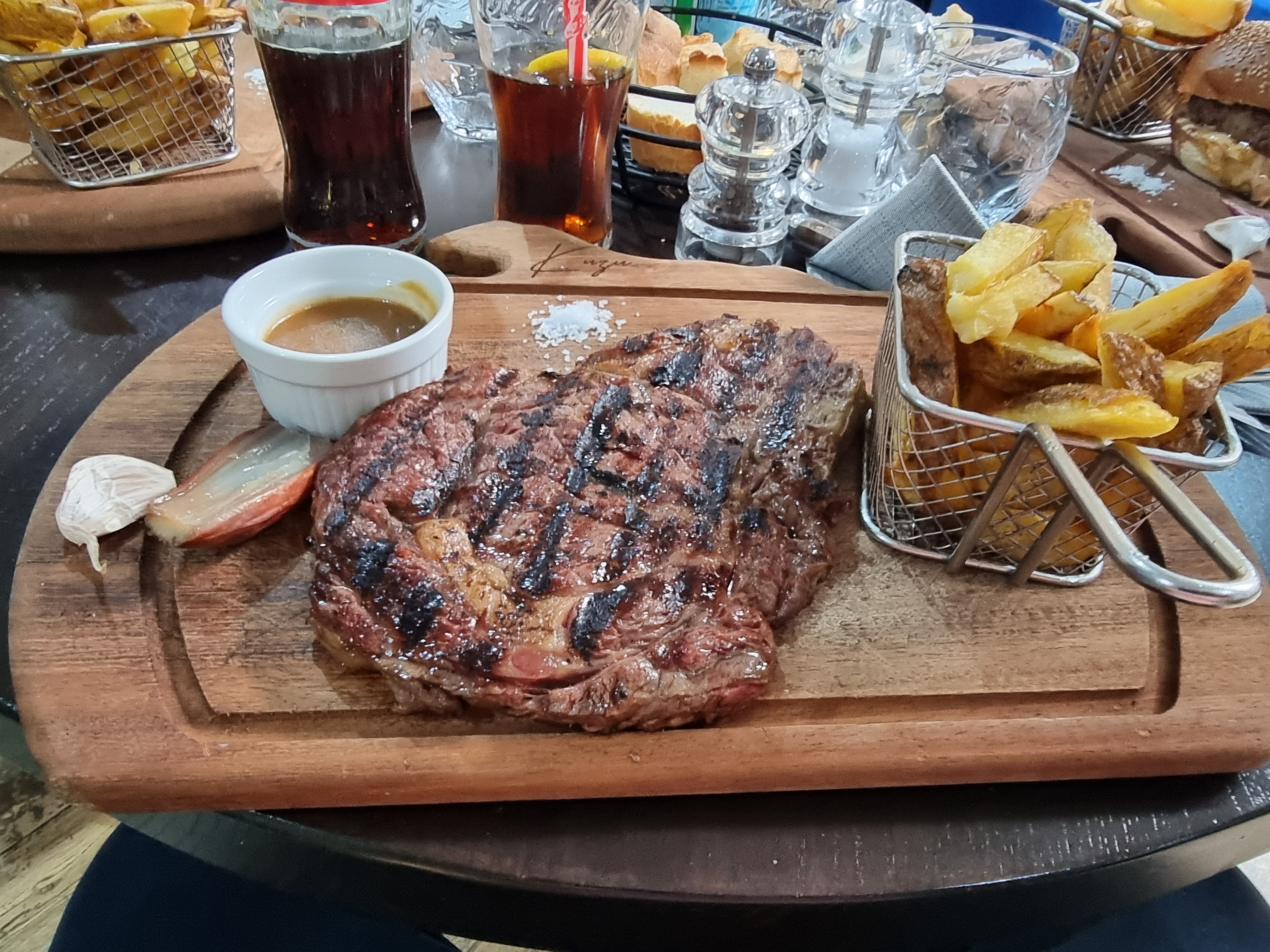 Bon repas, surtout le faux-filet et les frittes maison, dans ce steakhouse. Je conseille si vous passez par là.