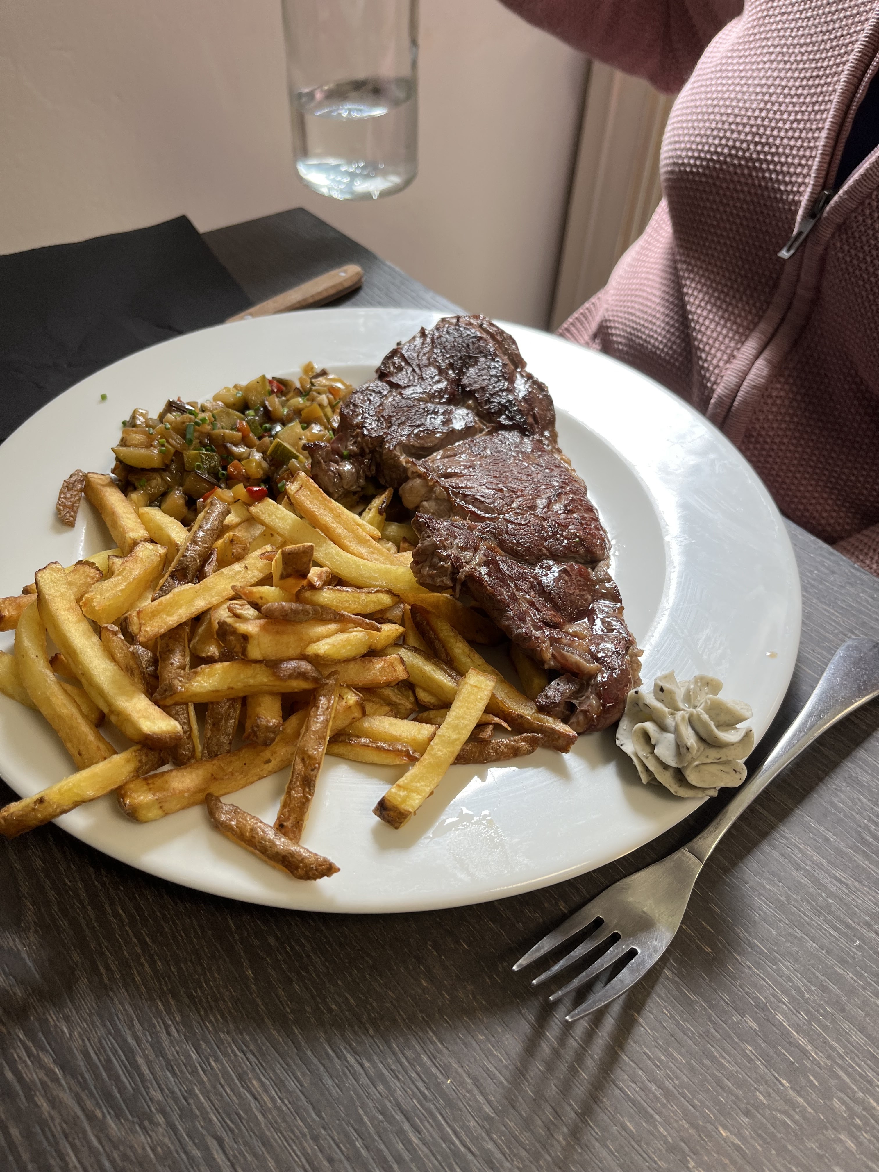 EQUIPE AVEC LE SOURIRE C'EST SUPER AGRÉABLE SURTOUT QUAND IL EST PAS FORCÉ. LIEU AGRÉABLE ET CHALEUREUX, TOUT EST FAIT MAISON POUR DE VRAI 😅 ÇA SE SENT Y A PAS PHOTO, ET MES PAPILLES VOUS EN REMERCIE PLEINEMENT. MAGNIFIQUE PIECE DE VIANDE ET ASSIETTES COPIEUSES, POUR LE PRIX FRANCHEMENT C EST VRAIMENT PAS CHER. MERCI INFINIMENT POUR TOUT ET À TRÈS BIENTÔT. LÂCHEZ RIEN CAR VOUS PESEZ LOURD FACE À LA CONCURRENCE.
