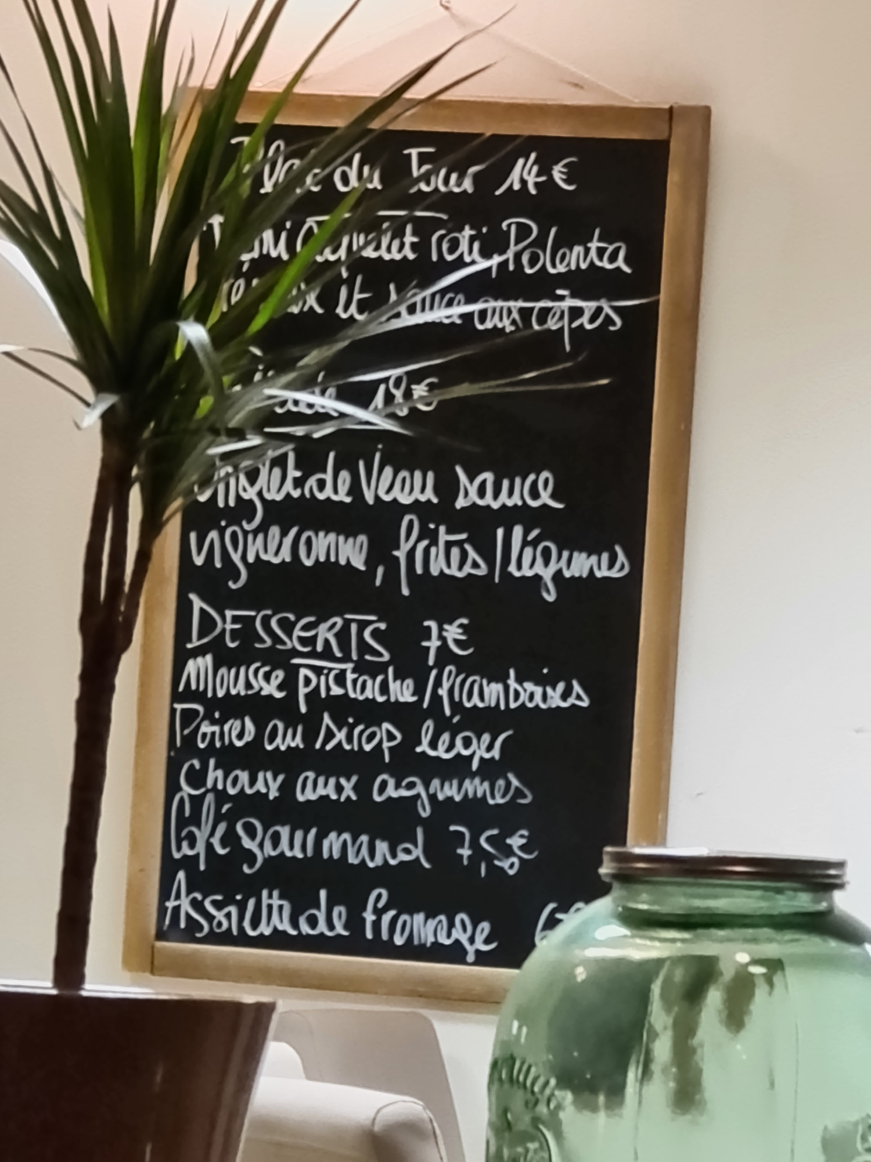 Nous avons pris les plats du jours et nous sommes régalés. Vraiment un endroit que je recommande la cuisine y est toujours bonne et plutôt recherchée à un bon rapport qualité prix.