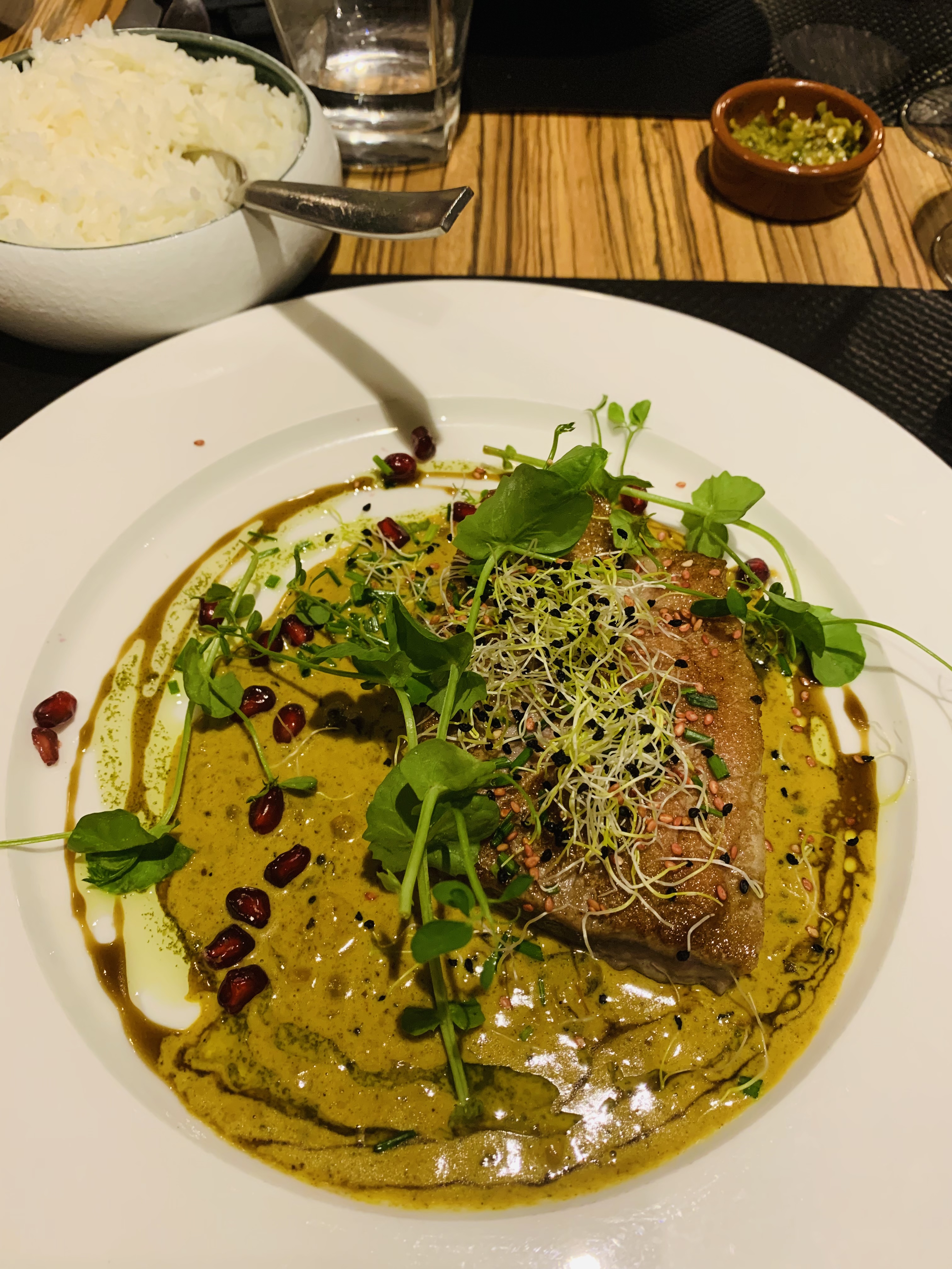 C’est déroutant, typique/traditionnel et à la fois percutant/raffiné… on retrouve notre bon « Cot », le rhum arrangé que l’on ne trouve pas ailleurs, le rougail tomate rafraîchissant (je ferais une version pimentée car finalement beaucoup de réunionnais sur Rouen :)). Les bonnes saucisses faites maison, le poisson massalé revisité… pour le travail accompli et le courage de cette cheffe reconvertie et passionnée, le prix est correct. Bravo Lynda ! Nou lé la 🇷🇪