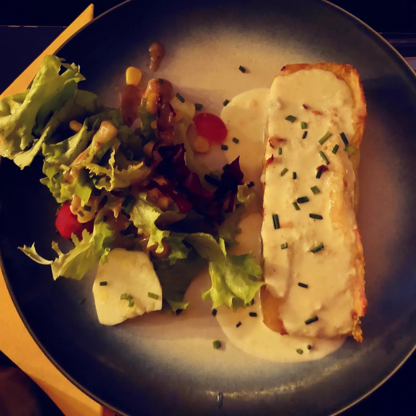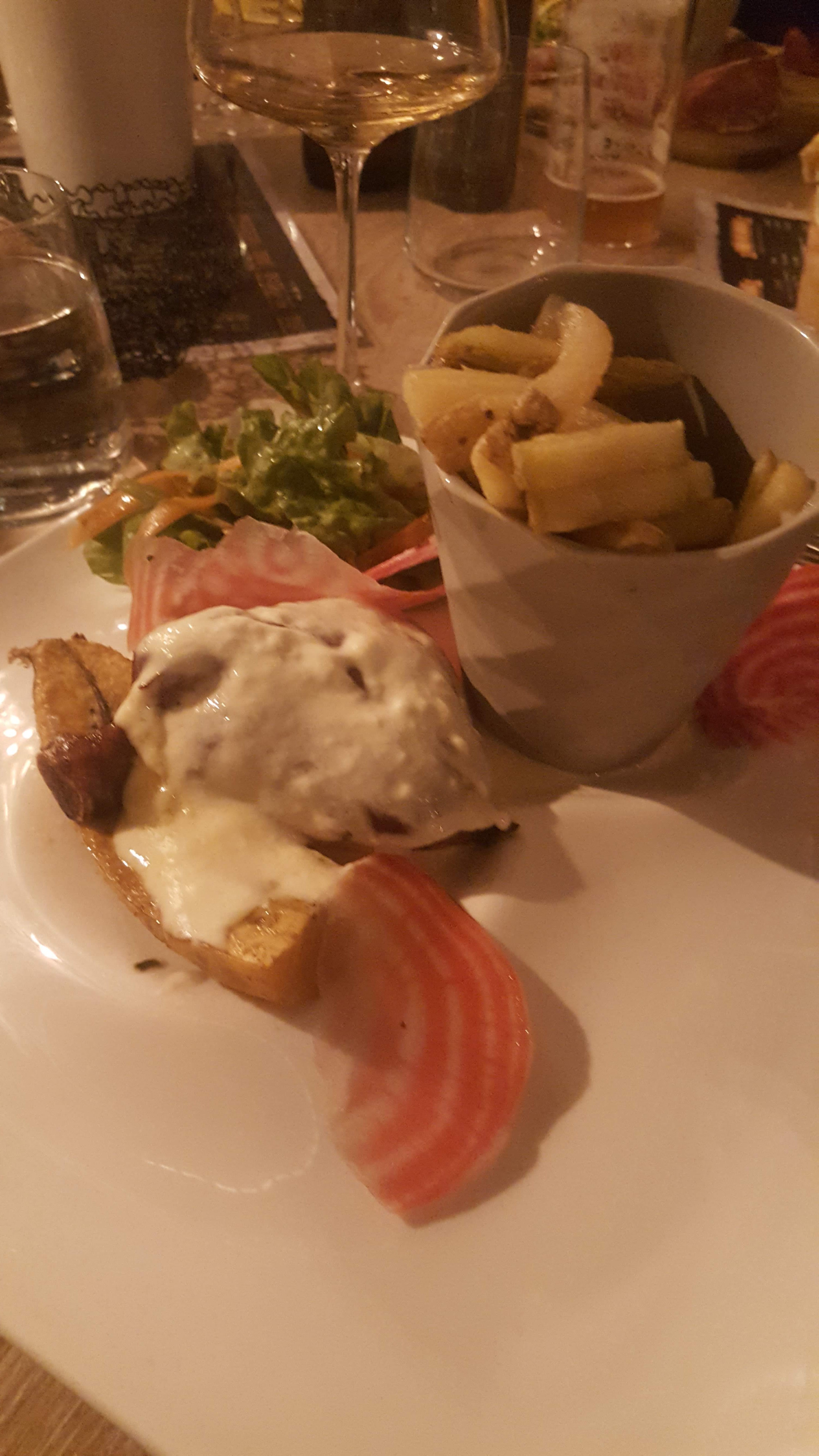 Restaurant plutôt sympa menu entrée plat dessert à 24, 50 €. j'ai trouvé le restaurant sympa le patron accueillant mais je ne sais comment l'expliquer je reste un peu sur ma faim. Pour vous donner un exemple j'ai pris du fromage rôti et j'ai eu 3 lamelles de pain d'épice et des frites pour tremper dans le fromage aucune autre garniture m'étais proposé dommage.