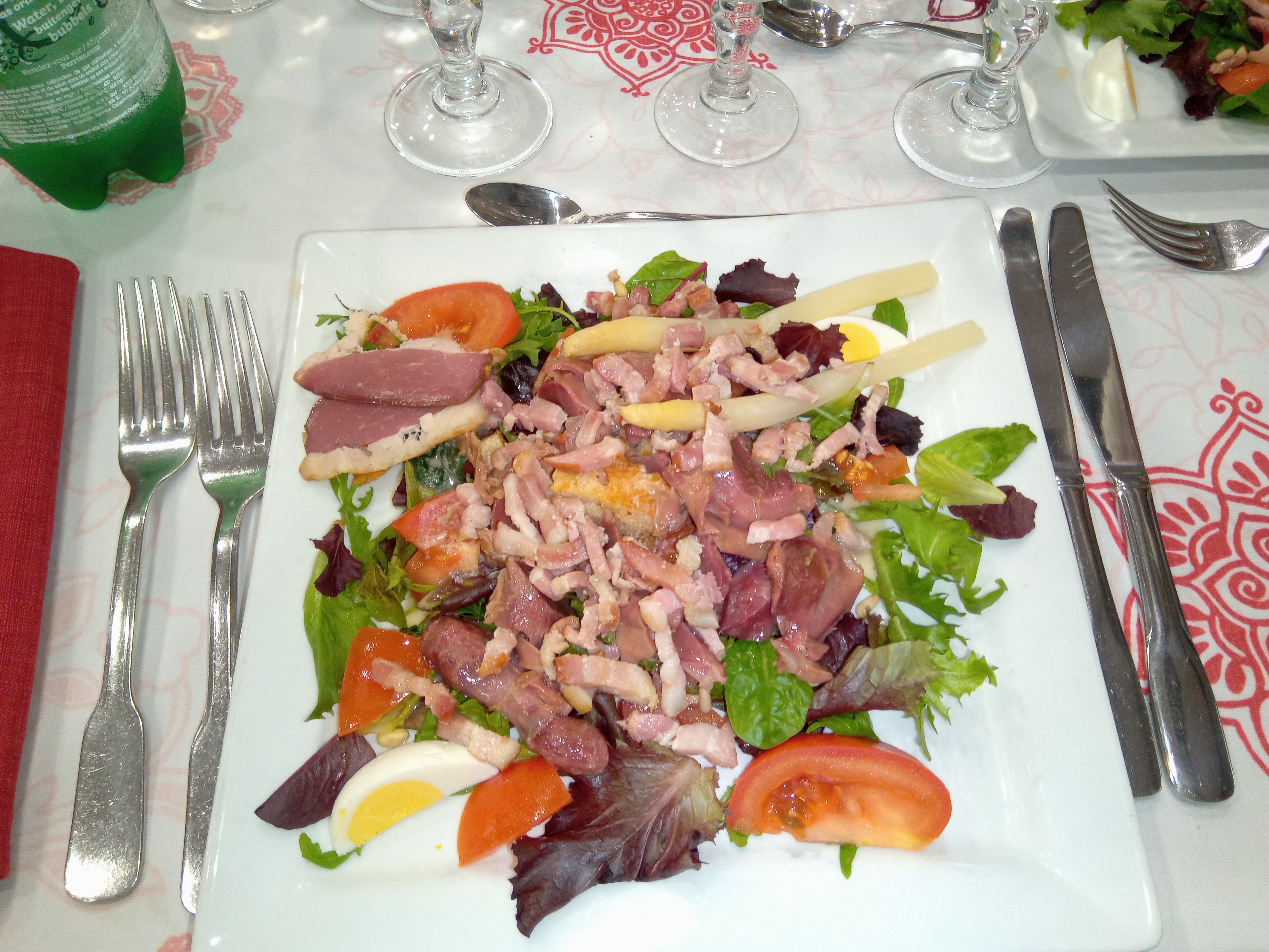 Joli repas de famille , service rapide et efficace, produits frais et assiette copieuse