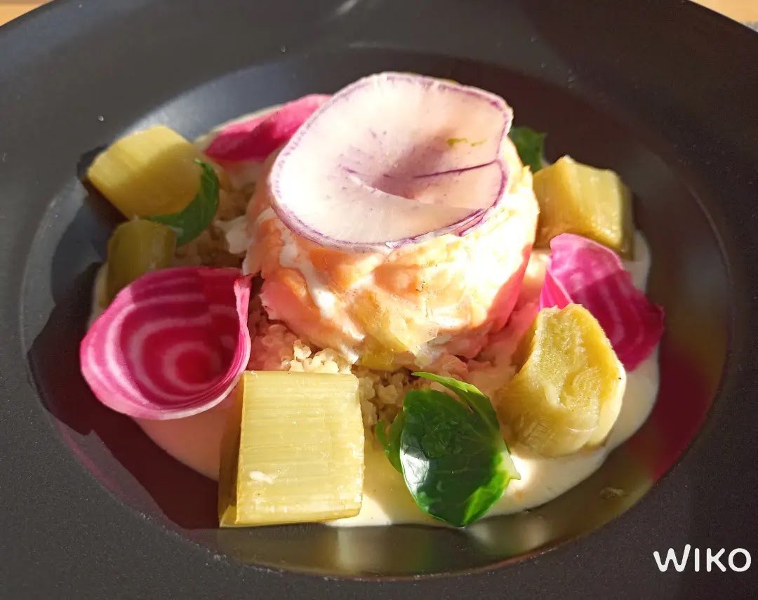 Quelle bonne surprise, des plats élégants et savoureux, une ambiance détendue et du personnel attentifs et aimables Un premier menu très très abordable fait avec des produits locaux et de qualité, une belle carte des vins ... A recommander pour un bon repas en famille ou entre amis