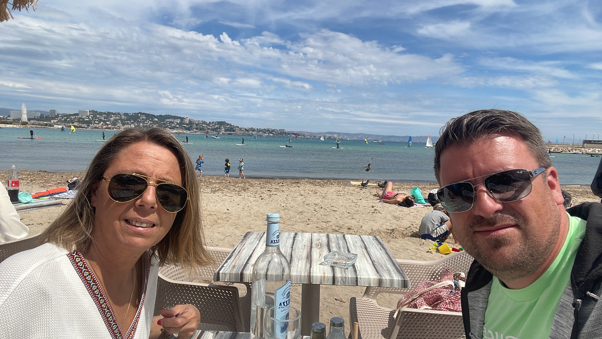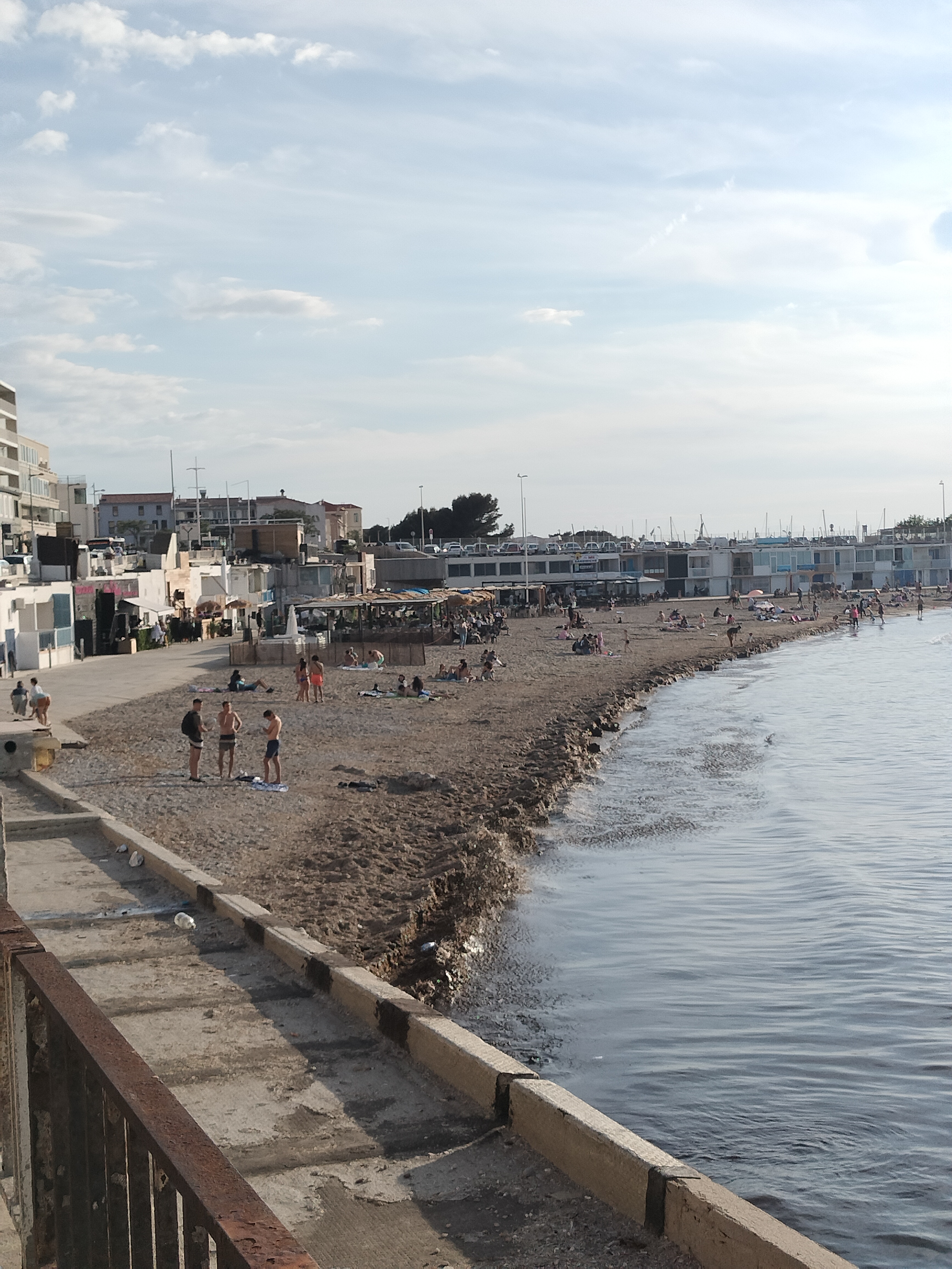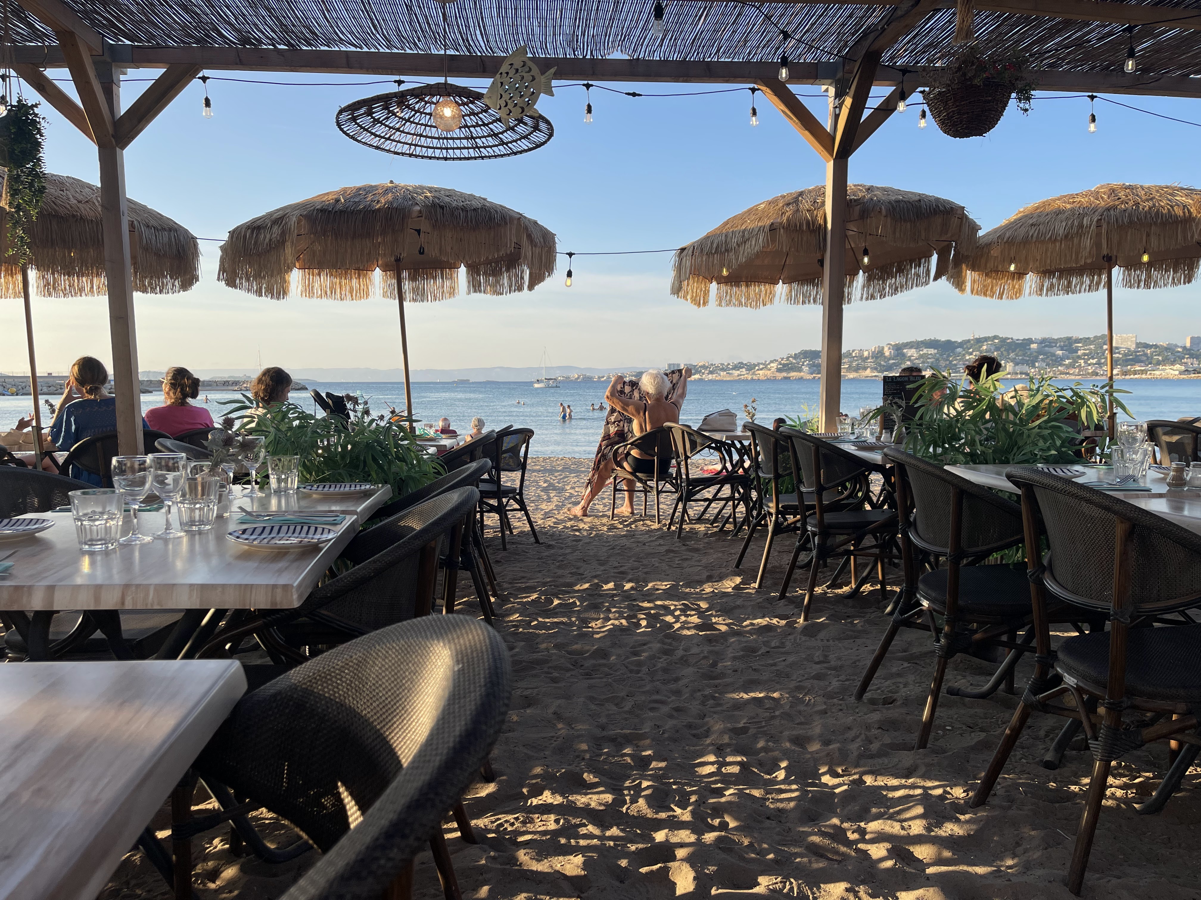 Lieu sympa car sur la plage de la Pointe Rouge. Un peu serré.