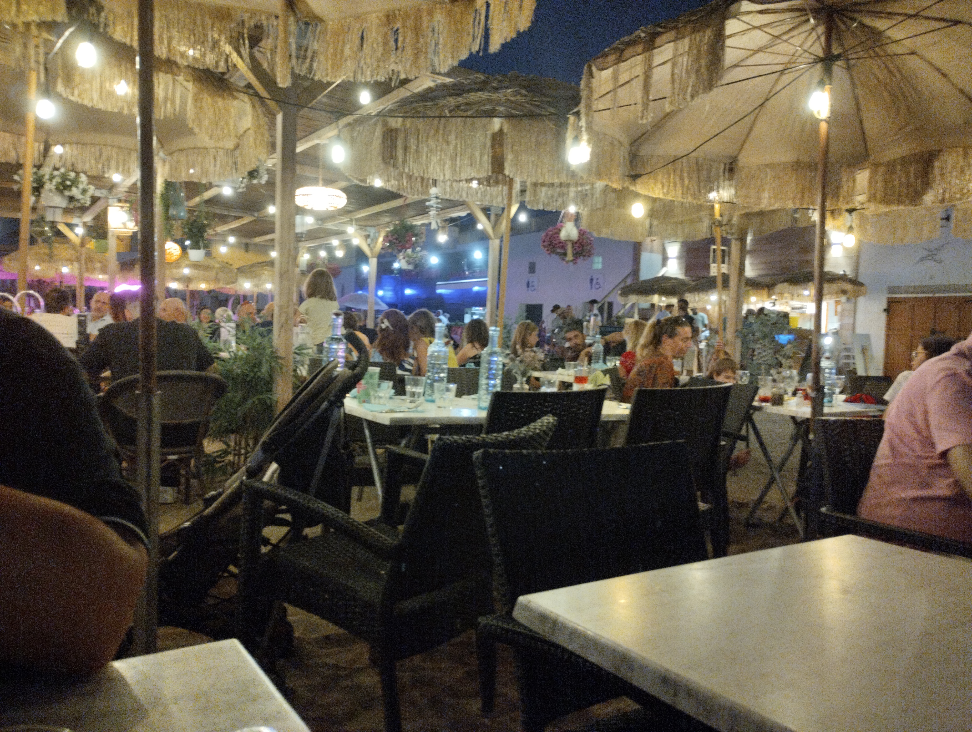 A éviter, nourriture laisse à désirer (moules encore sales et non nettoyées, gambas idem, repas servi froid, serveur ne parle pas français, toutefois la gérante était sympathique et le restaurant se situe en bord de mer (pieds dans le sable) On a du aller prendre le dessert à côté à la chicha.