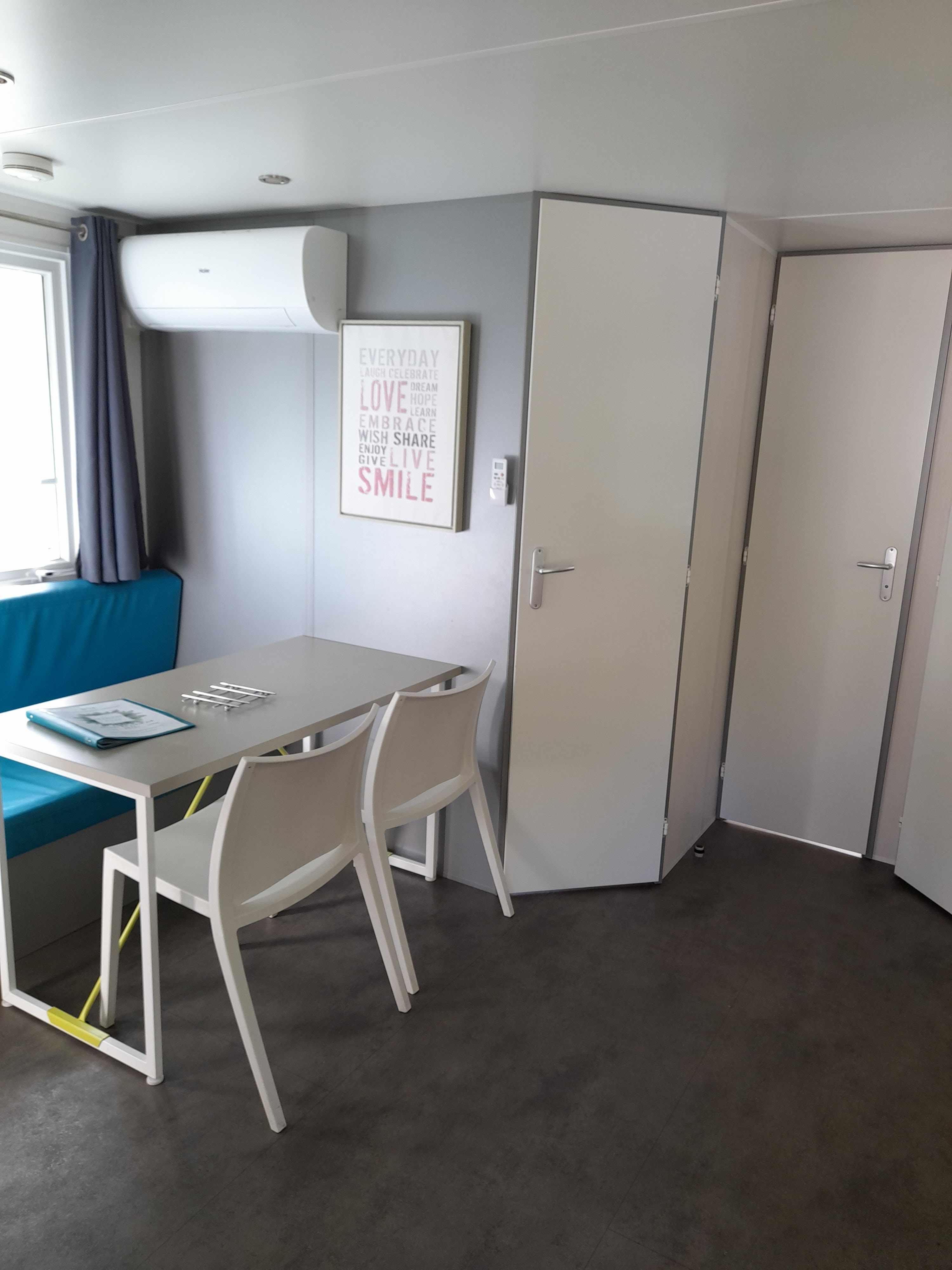 Génial ! Mobile home moderne, propre, climatisé et bien équipé, literie confortable (seul bémol concernerait la banquette du coin salon). Le lieu est sincèrement magnifique, les allées sont arborées et très fleuries, le lagon est paradisiaque, et les deux piscines chauffées très appréciables aussi, avec beaucoup de transats, parasols, et des bouées à disposition. Pour les enfants tout y est, structures de jeux et jeux gonflables, terrain multisports, de foot et de beach volley, nous n'avons pas testé les animations et le mini club pour notre fils mais visiblement les enfants s'amusaient beaucoup ! Personnel très sympathique, disponible et a l'écoute que ce soit à la réception, au bar etc ... Notre fils veut revenir tous les ans ! Bonne continuation et à bientôt peut-être !