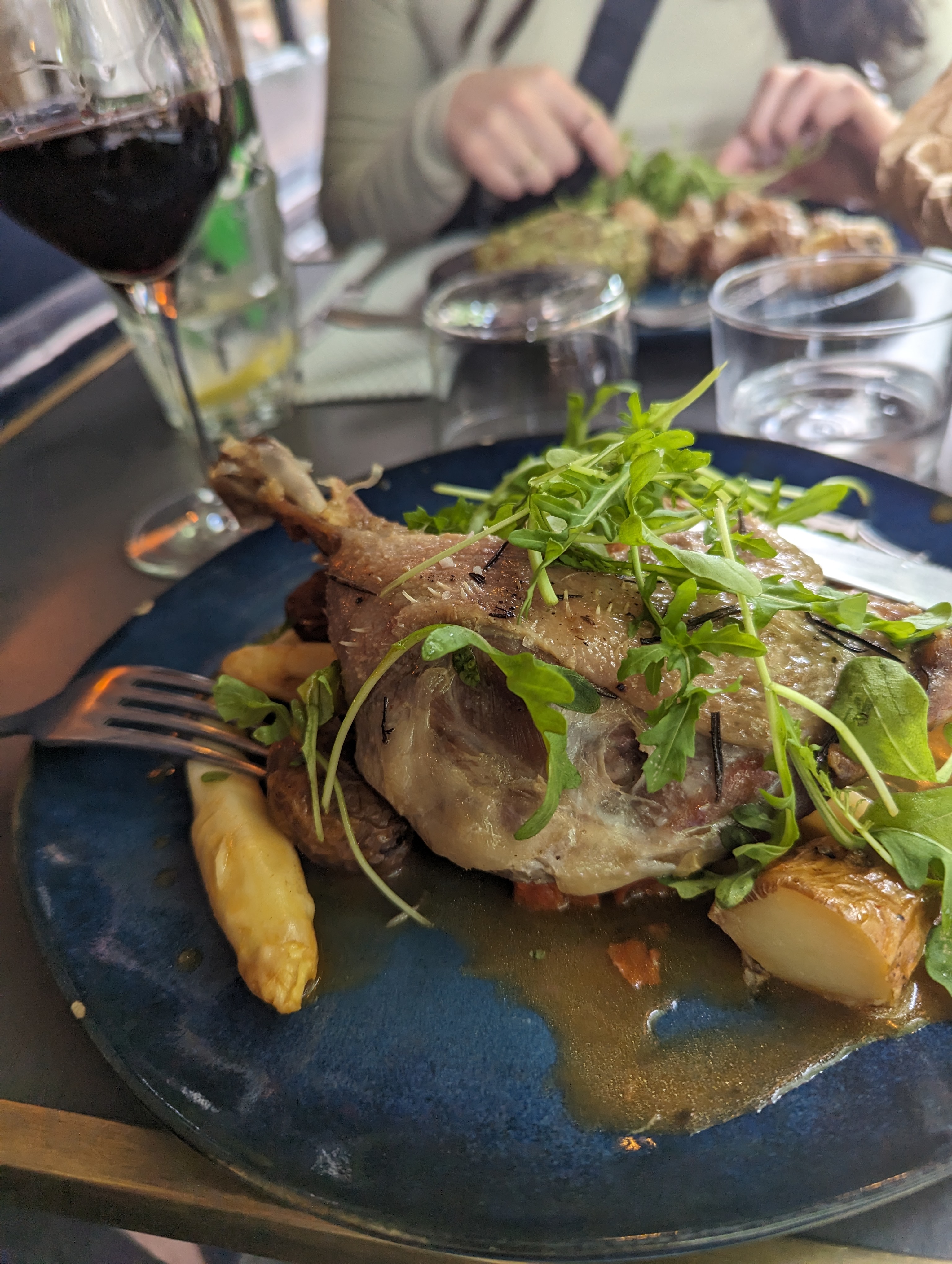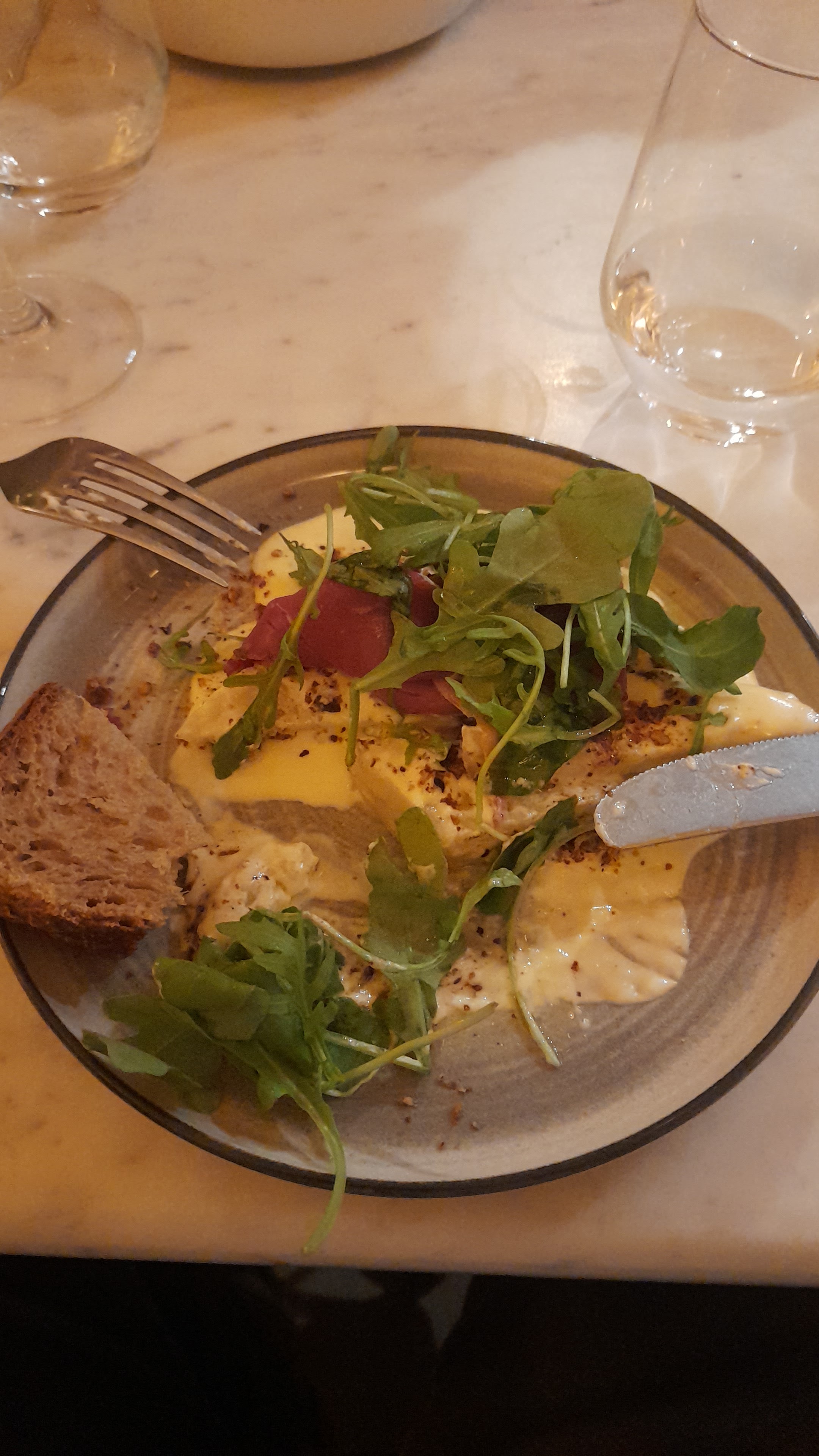 Excellent déjeuner. Excellent pâté en croûte. Très bons gnocchi à la truffe. Et la mousseline à l’orange du pain perdu était très bonne aussi. Le chardonnay est bon, d’une très jolie couleur et servi à la bonne température.