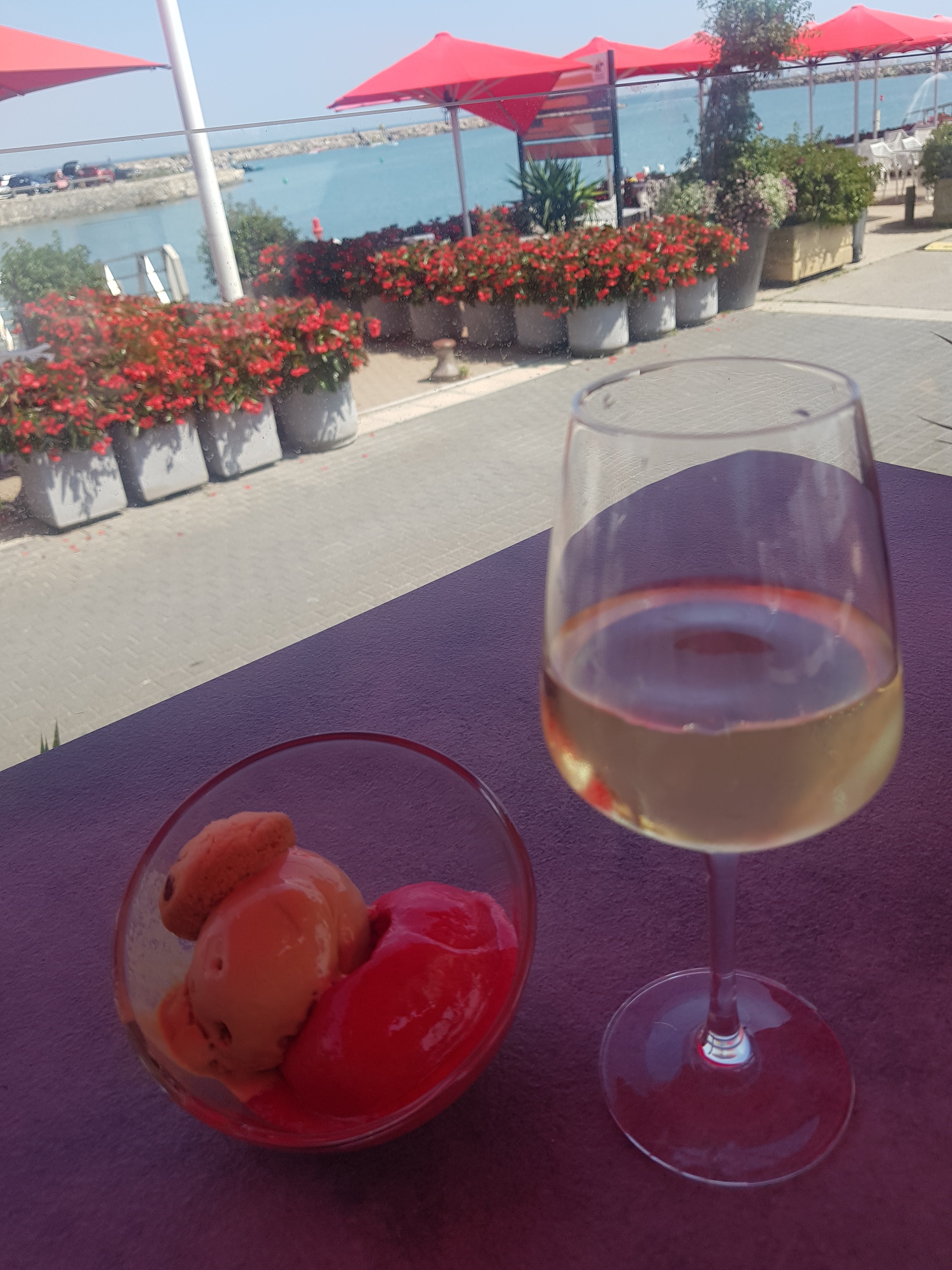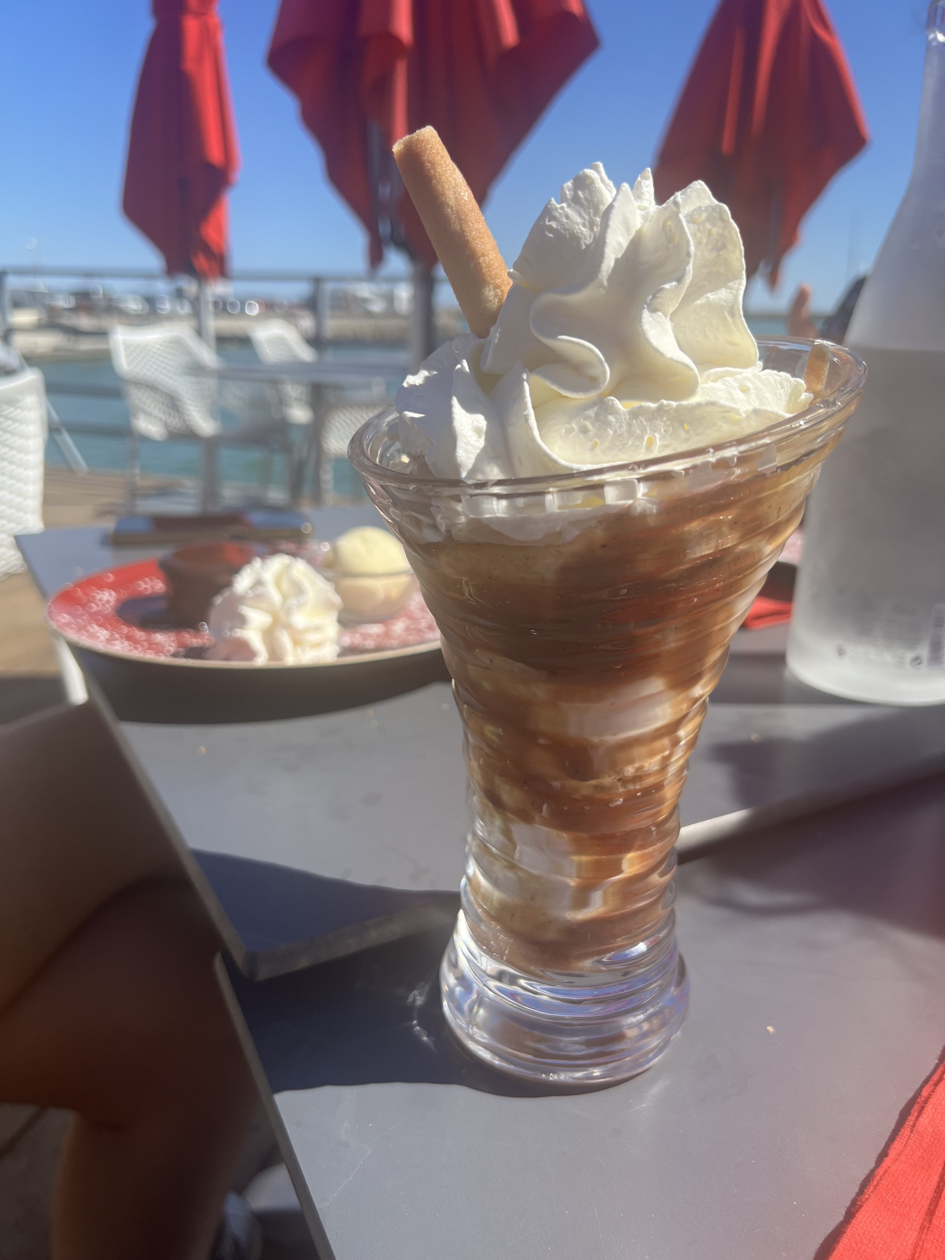 Restaurant très bon et très copieux !!! C’est vraiment très sympa et agréable de pouvoir manger en terrasse au bord de l’eau, j’ai beaucoup apprécié. Il y a aussi des mouettes gourmandes qui tiennent compagnie, et qui attendent qu’on leur jette à manger. En entrée nous avons pris des cocktails avec du houmous. Je n’ai pas été fan du houmous car je l’ai trouvé très citronné… la tapenade d’olive noire sur des tartines de pain grillés à l’ail est délicieuse ! En plat on a goûté les salades Méditerranée et lamparo. Elles étaient excellentes, diverses et riche en goût. Très très copieuse ! La décoration des assiettes auraient été top si ça avait plus raffiné. Je pense que servis dans des très grands bols ça aurait été mieux. En dessert, on a fait les gourmands en prenant un café gourmand et des profiteroles ! Je suis super contente car d’habitude je suis assez déçue des desserts dans les restaurants, or là ce n’était pas le cas ! Vraiment merci à vous de prendre le temps nécessaire pour réaliser des très bons desserts et ça fait vraiment la différence ! De bonnes portions généreuses ! J’ai adoré ! Le café très bon aussi, servis dans des petites tasses super mignonnes au motif marin. Excellent repas dans l’ensemble ! Je recommande.