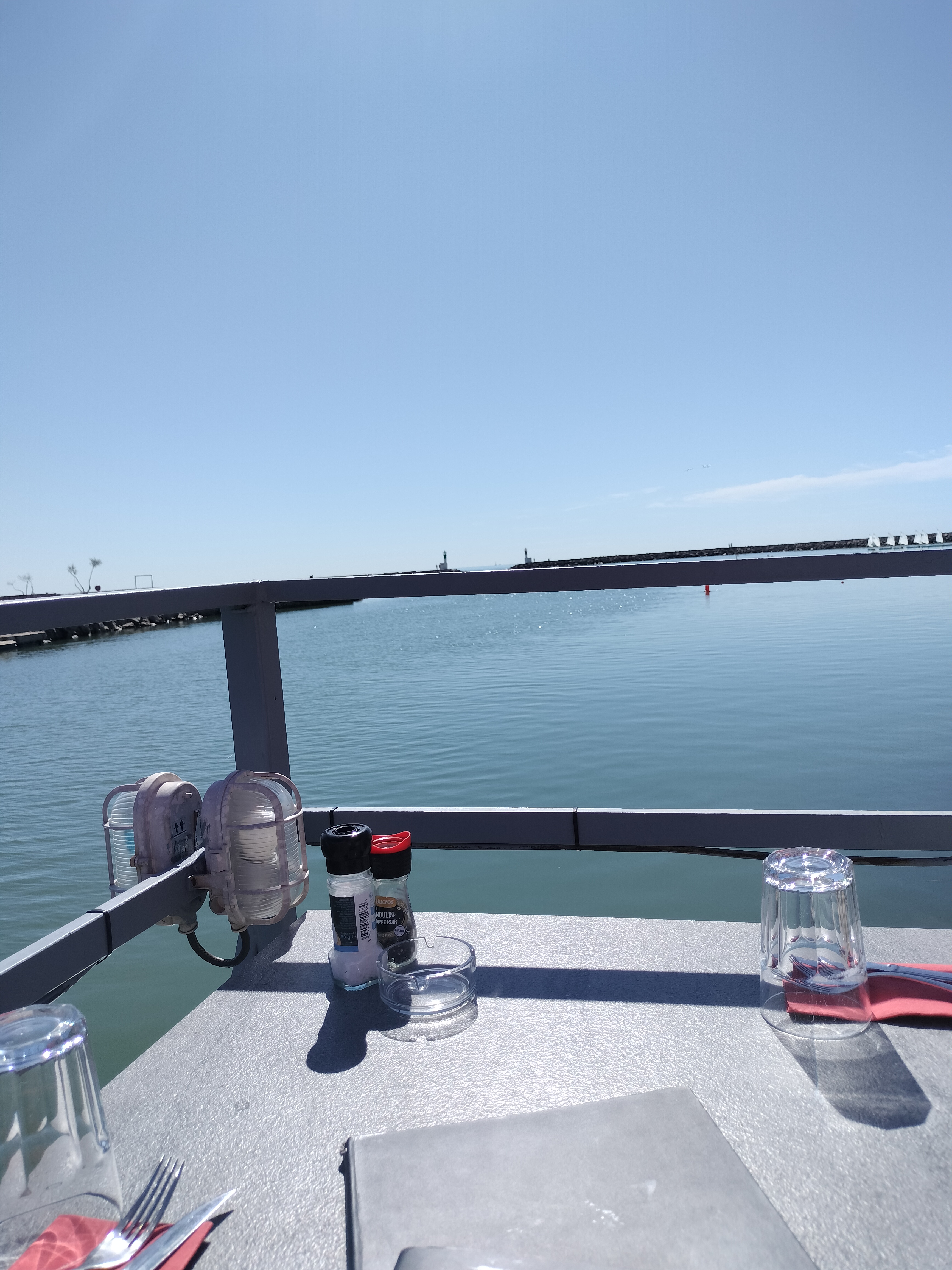 Endroit sensationnel pour manger au bord de l'eau. Cadre magnifique. Notre déjeuner de salade de fruits de mer était incroyable et énorme. Nous avons dégusté un rosé chacun et de l'eau froide. Très bon service. Recommande fortement
