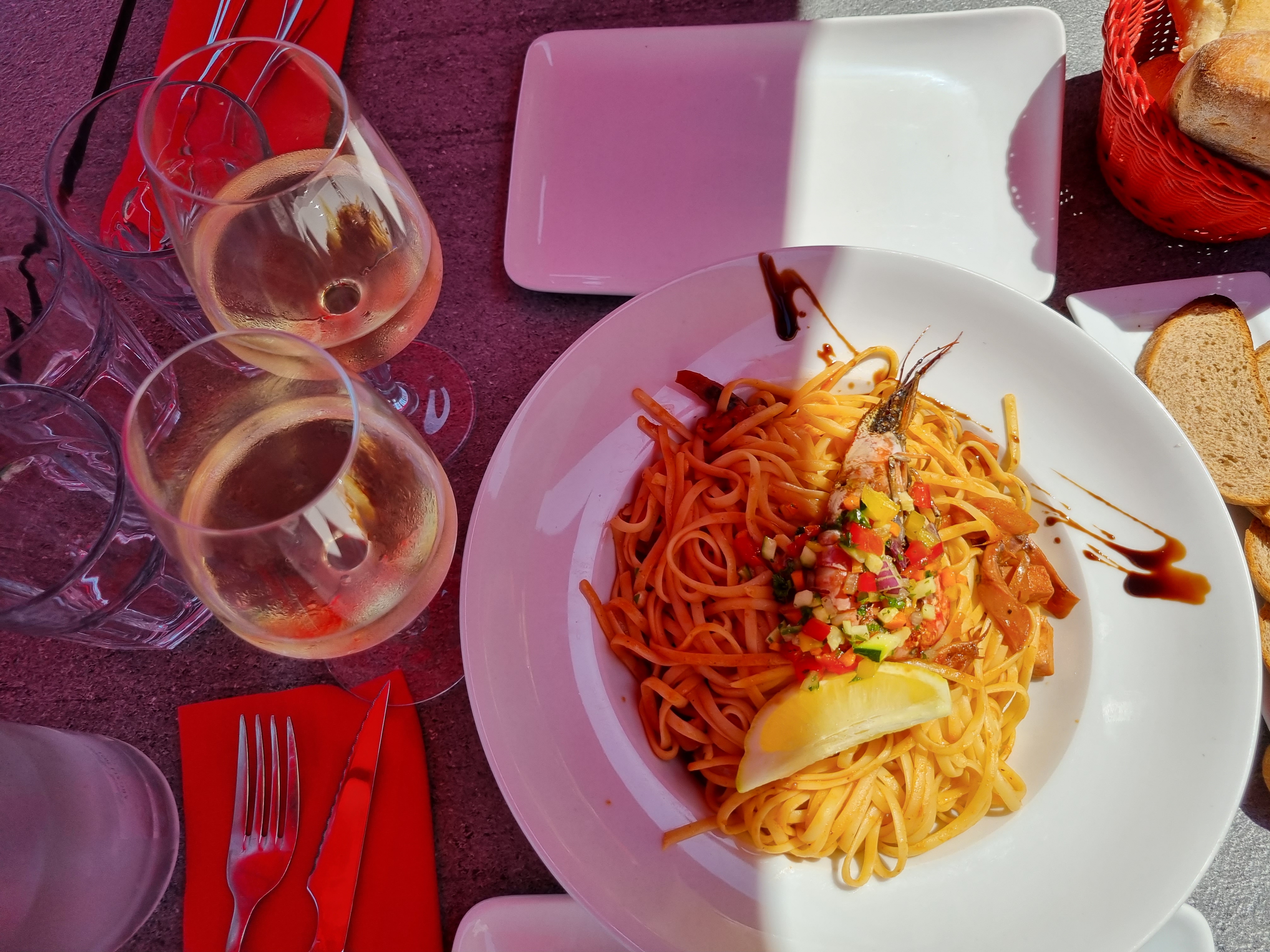 Restaurant de bord de mer bien placé car juste car bord de l'eau à la sortie du port de Carnon. Certaines tables donnent directement sur l'eau. Les pâtes aux fruits de mer sont très bonnes ! Les poissons aussi. Le service est toutefois long. Nous avons trop attendu pour recevoir nos plats.