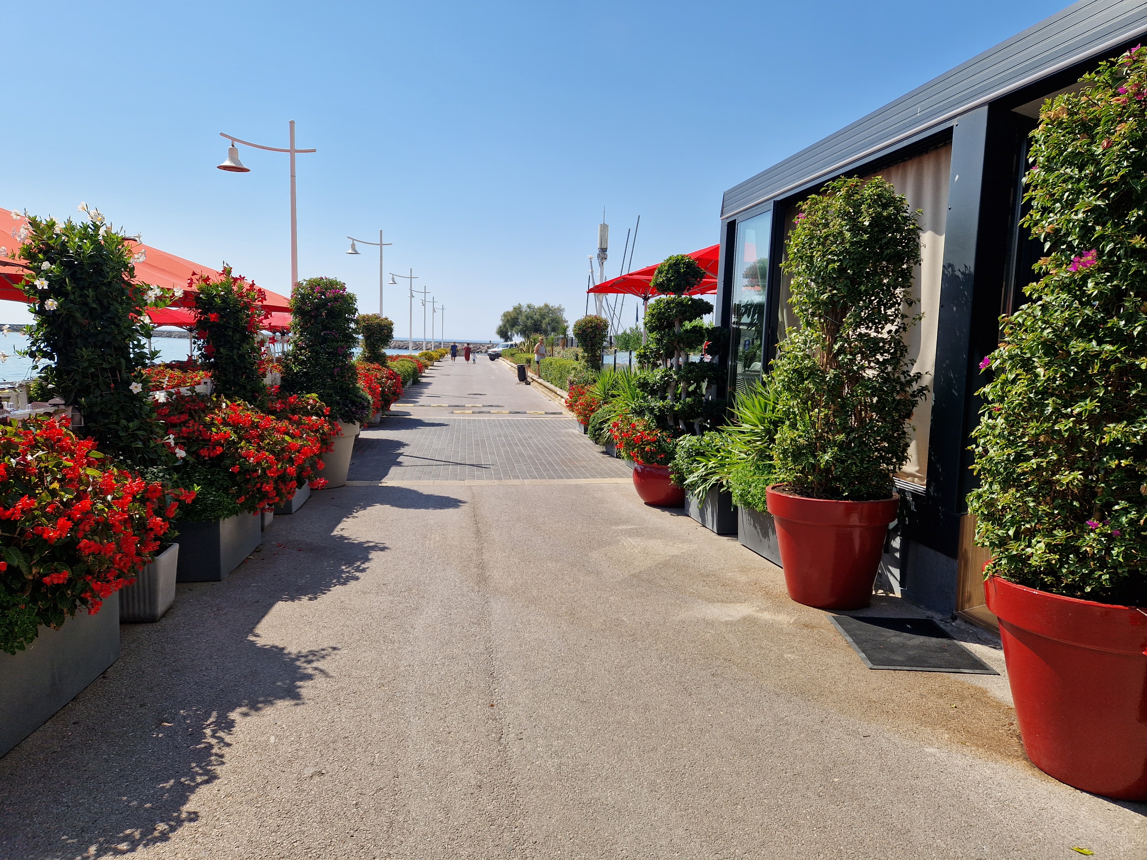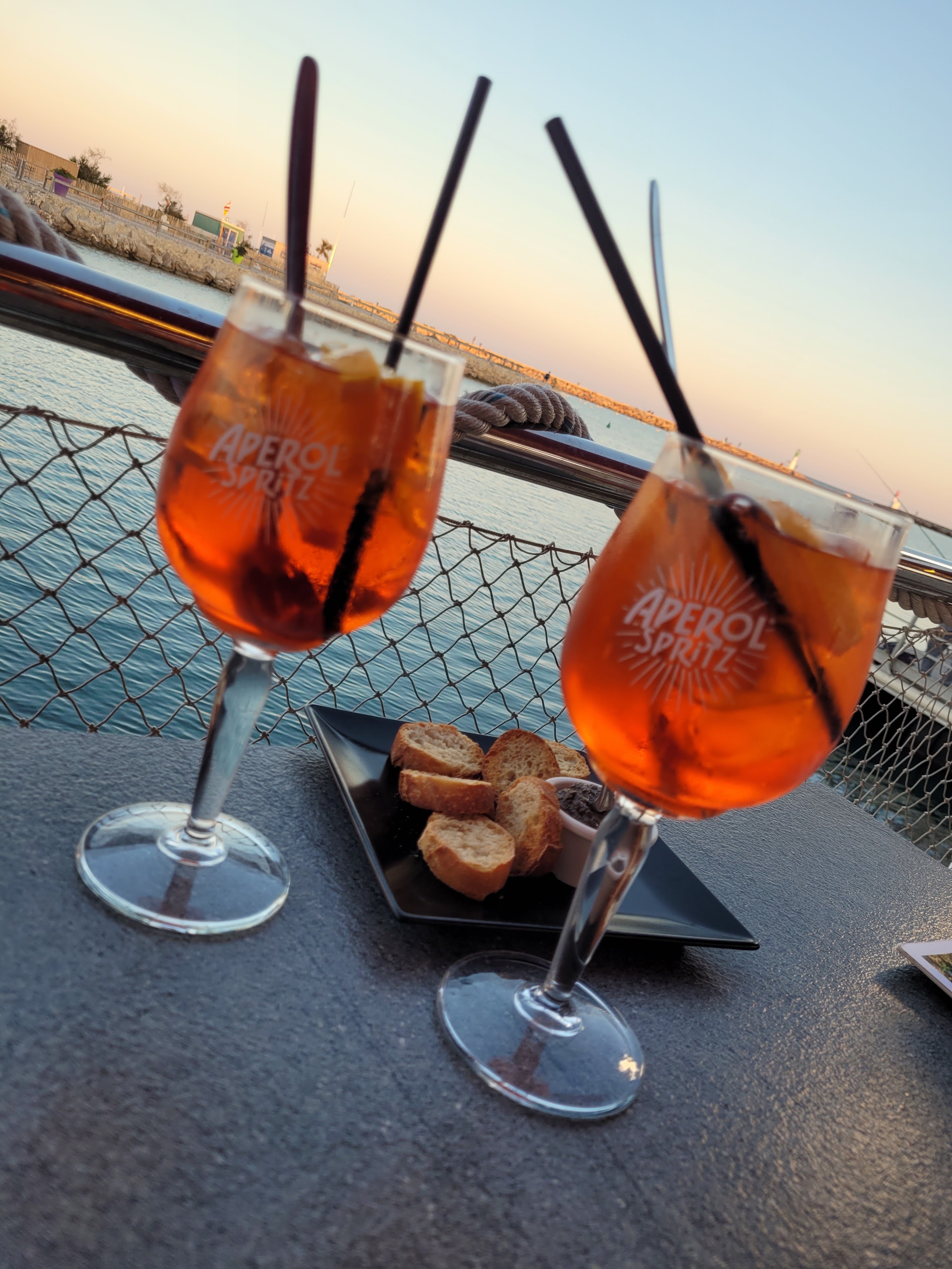 Terrasse au bord de l'eau (entrée de port). Très bien pour partager un bon et doux moment en amoureux. Pour les amateurs de poissons, il faut venir au Lamparo.