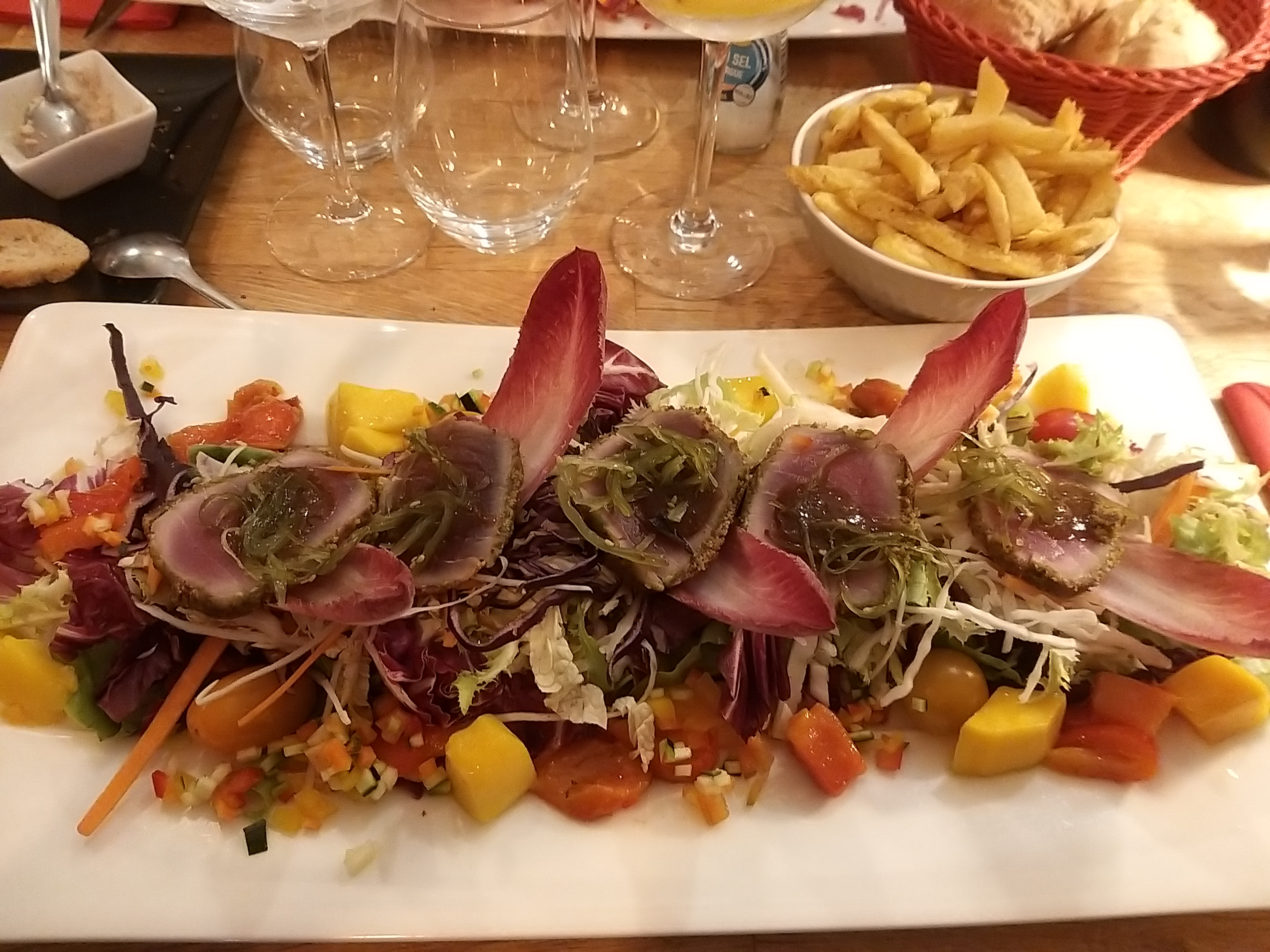 Excellent. Belle découverte pour nous. De bons conseils sur le choix des plats en effet nous avons commandé des tapas avec l'apéritif et le serveur n'a pris notre commande de plats qu'après car au vu du plat de tapas très fourni notre choix initial avait évolué. Nous aurions pu nous arrêter au tapas et passer directement au dessert tant c'était copieux et savoureux. Les plats suivants gambas étaient tres copieux et bien cuits. Profiteroles excellente s .il faisait un peu frais et le restaurant propose des plaids tout doux que nous avons utilisé avec joie . Bref un excellent moment nous reviendrons