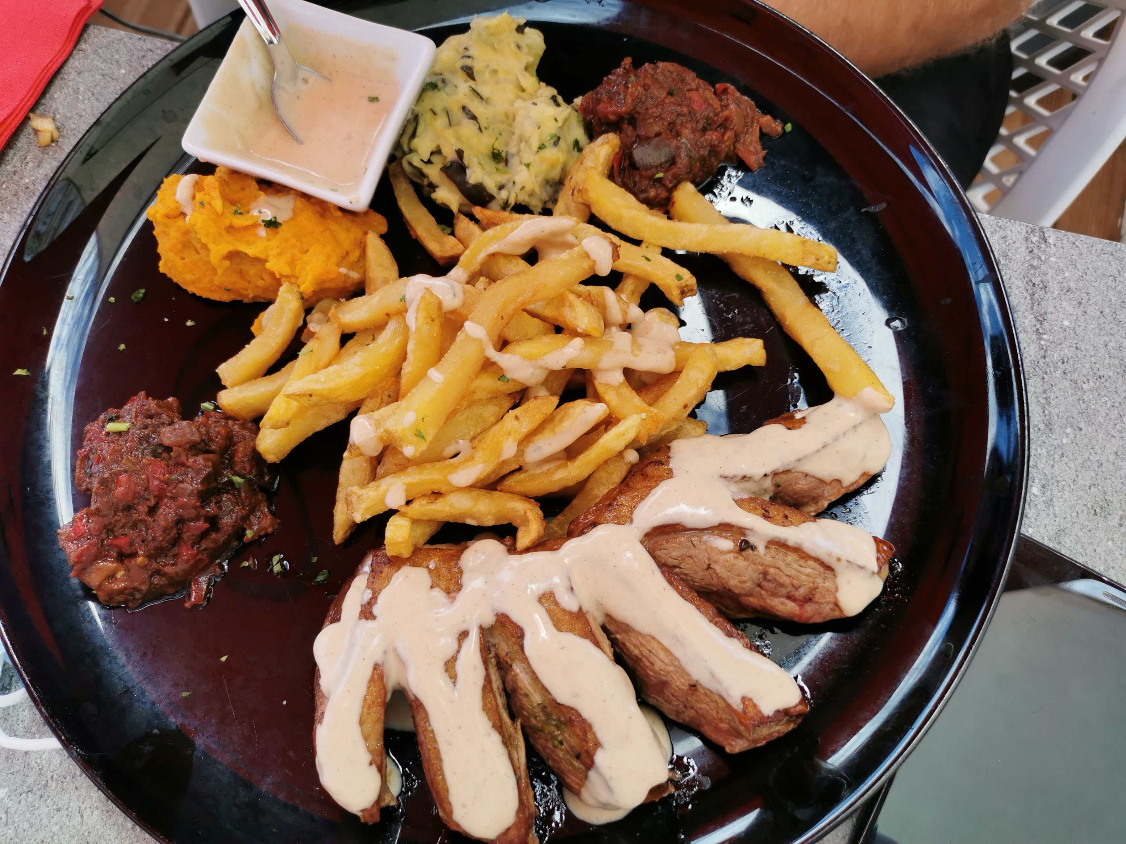 Nous y avons passé une belle soirée. Tout est cuit à la braise et les plats sont très copieu .pour finir nous avons eu un jeune serveur qui nous a servi à la perfection.
