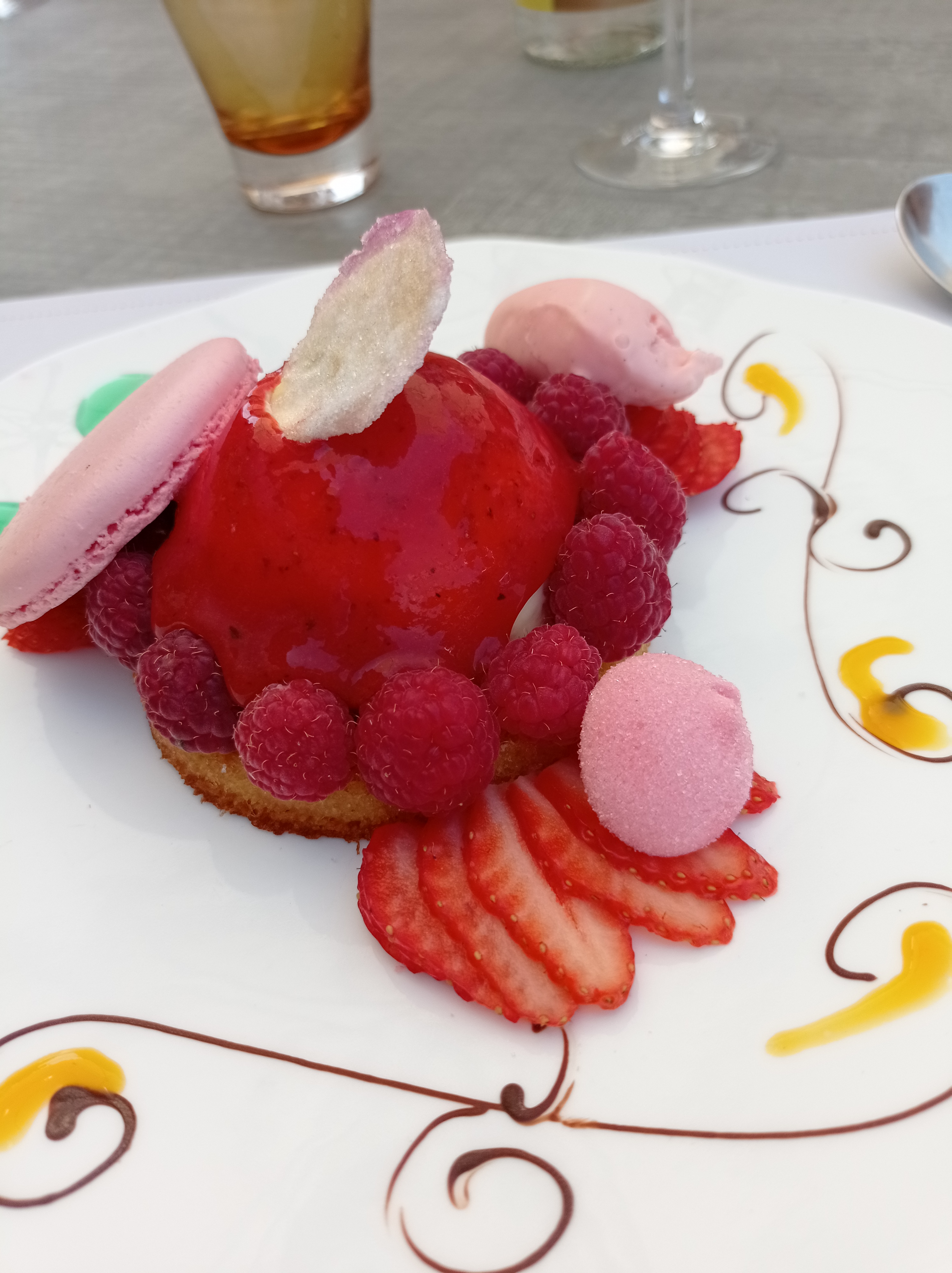 Cadre magnifique même si aujourd'hui le temps était nuageux et pluvieux . Nous avons pris le menu autour de la rose y compris cocktail . Excellent en goût et saveurs , très belle présentation des plats , diversité des produits. Personnel très accueillant , souriant et avenant. Nous recommandons fortement.