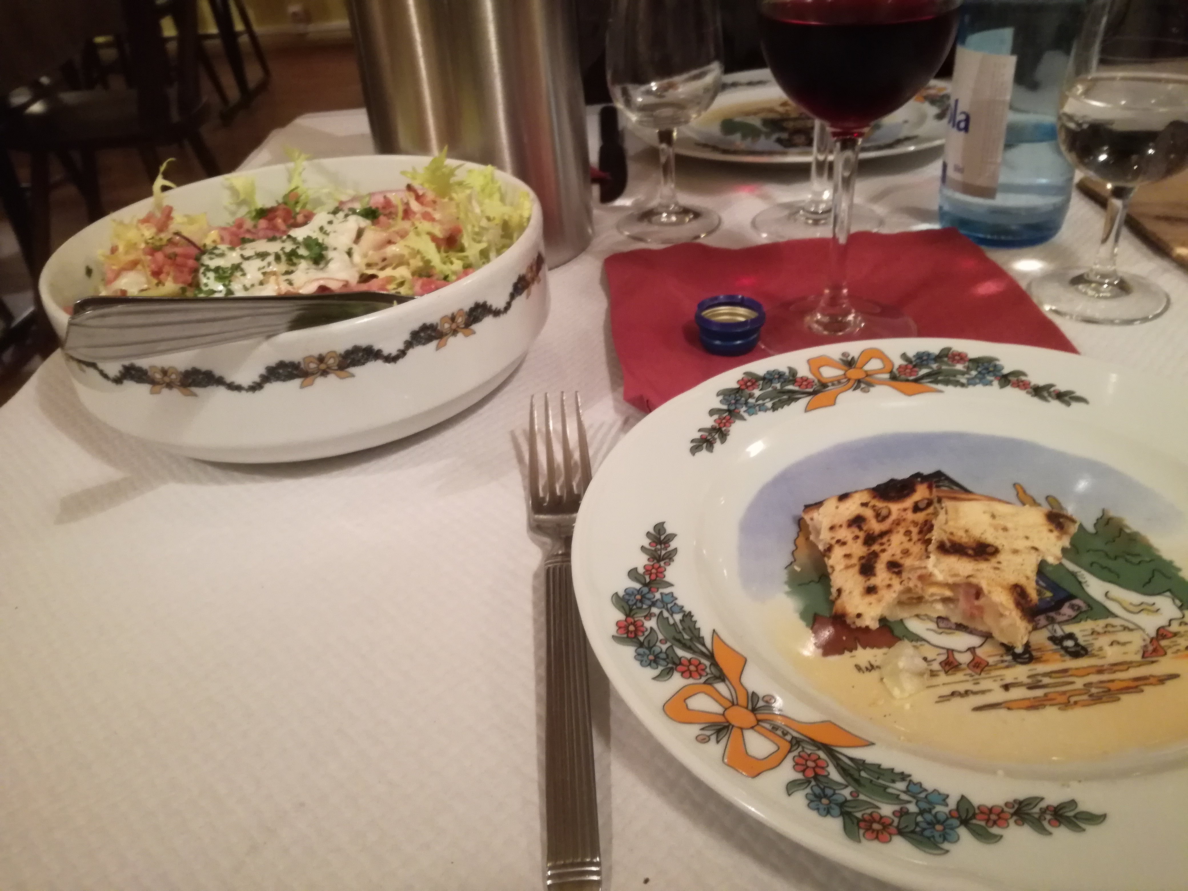 Cadre agréable, très bonnes salades généreusement servies, excellentes tartes flambées, tarifs très corrects.